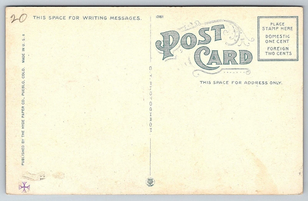 Region: Colorado Features: Divided Back, Original Genuine Antique Vintage Postcard Brand/Publisher: THE HYDE PAPER CO. Finish: Matte UPC: DOES NOT APPLY Country/Region of Manufacture: United States Subject: Original Genuine Antique Vintage Postcard Unit of Sale: Single Unit Color: Multicolor Character: Postcard Theme: Architecture, Cities & Towns, Famous Places, Landscapes, People, Roadside America, Social History, Technology, Transportation, Travel Type: Mail Old Genuine Original Postcard Card Image Picture Antique Postage Condition: Unposted Antique: Yes Size: Standard (5.5 x 3.5 in) Original/Licensed Reprint: Original Number of Items in Set: 1 gtin13: DOES NOT APPLY City: Pueblo Stamp: No Era: Divided Back (1907-1915) Seller Notes: “Good Vintage Condition.” Signed: No Artist: Postcard Orientation: Horizontal Posted: No Country: United States Vintage: Yes Signed By: None Franchise: Postcard Occasion: Postcard Material: Paper Featured Person: None Continent: North America