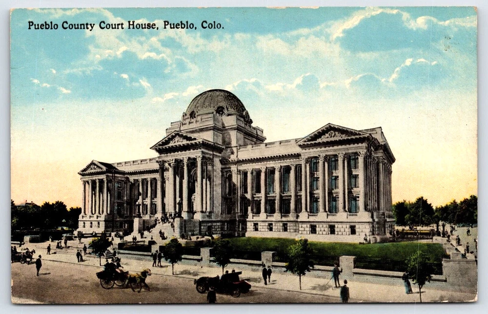 Original Old Vintage Postcard Pueblo County Court House Pueblo Colorado USA