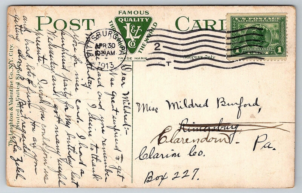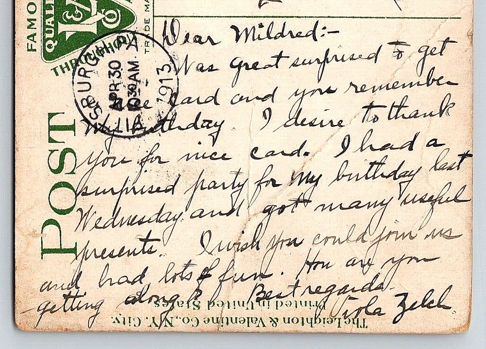 WELCOME TO People And Places Of The Past Here you will find unique antique photographs, real photo postcards, and other vintage postcards that can be used for collecting, genealogy, or crafting. Many of these historic photographs are rare, hard to find, and are one-of-a-kind images that cannot be found anywhere else. Please visit our ebay store and Thank You for shopping with us! This vintage, antique post card is in good condition. Please see high resolution pictures of the front and back of this postcard closely for detailed cosmetic condition prior to purchase. This post card measures 3.50 inches x 5.50 inches. This post card will be shipped to you packaged well inside of a clear plastic sleeve, inside of a quality 250 GSM rigid, stay flat envelope to keep the card flat, and to protect the card during shipping within the United States. A FRAGILE or DO NOT BEND sticker will be applied to the outside of the envelope. Your post card will be delivered to the post office the same day, or the next business day, after receiving payment. Bad weather and holidays can affect delivery times. Returns are accepted within 30 days of purchase. SHIPPING OPTIONS Choose One That Is Best For You For Cost And Speed Of Delivery: 1. EBAY STANDARD ENVELOPE - This is USPS First Class Mail and our standard way of shipping. Basic postcard protection with no tracking or minimal tracking with this option. 3 - 6 business days estimated delivery. If you would like your postcard faster, please choose one of the other options below. 2. USPS GROUND ADVANTAGE - Full bar code tracking available with this option. Cardboard protection added around postcard. 2 - 5 business days estimated delivery. 3. USPS PRIORITY MAIL - Full bar code tracking available with this option. Cardboard protection added around postcard. 1 - 4 business days estimated delivery. Each item is inspected, packaged, weighed, and sealed individually for FAST SHIPPING! We try our best to represent the item in the images as accurately as we can. However, due to variations in color in image scanners, computer screens, and cell phone displays, the color may be slightly different than the actual product. Vintage post cards and photographs can show normal signs of wear associated with an antique image including curling, bends, folds, creases, holes, dents, stains, rips, scratches, worn edges, fading, crackling, handwriting, fingerprints, postage cancellations, postage stamps, missing pieces, paper or glue residue from being put into or taken out of old postcard/photograph albums, other damage that may not show up from the image scanner, or can be out of focus by the original photographer. They will have imperfections from being mailed and/or due to their antique age. Thank You For Shopping With People And Places Of The Past! Visit our ebay store at www.ebay.com/str/peopleandplacesofthepast New Items Added Every Week!