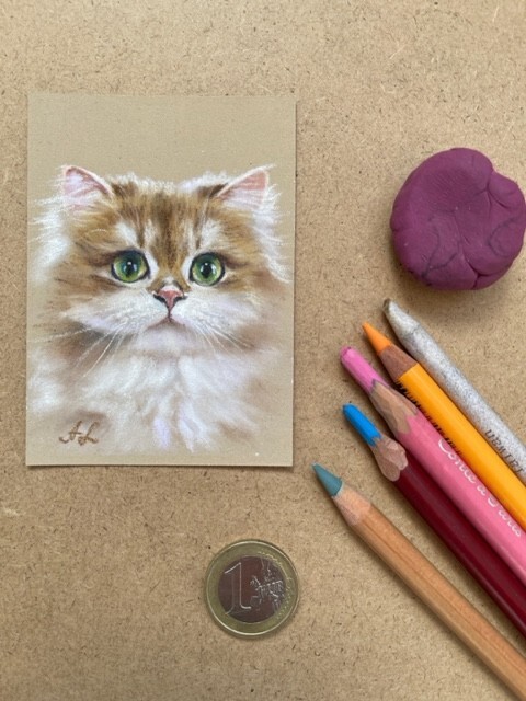 Original Pastel Persian Cat Drawing in ACEO Format by Artist