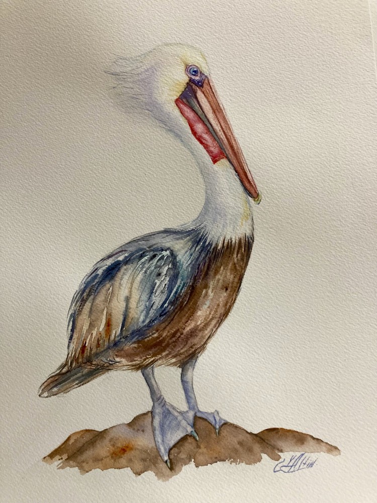 Pelican. Florida bird . Watercolor original painting . Not a print or a copy . Cold press acid -free100 %cotton watercolor paper .Arches. Size 10 x 14 inches . Signed on a front and a back by artist Liz Altin . The painting comes is quality zip lock clear disposable plastic bag , strong backing board and is well protected.
