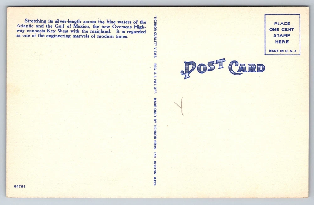 Original Vintage Postcard Bridge Cars New Overseas Highway Key West Florida USA