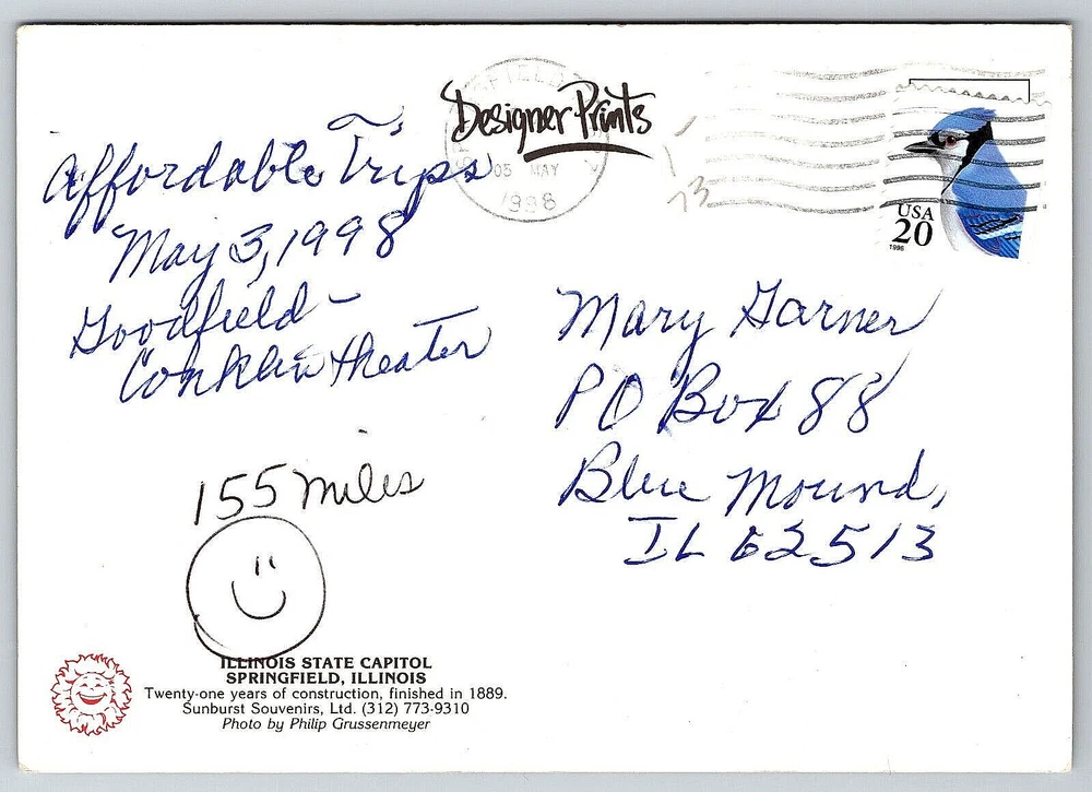 Finish: Glossy Era: Undivided Back (1901-1907) Orientation: Vertical gtin13: DOES NOT APPLY Original/Licensed Reprint: Original Vintage: Yes Brand/Publisher: Sunburst Souvenirs Unit of Sale: Single Unit Continent: North America Posted: Yes Country/Region of Manufacture: United States Featured Person: None Postage Condition: Posted Stamp: Yes City: Springfield Material: Paper Signed By: Sender Antique: Yes Theme: Architecture, Cities & Towns, Community Life, Famous Places, Historical Figures, Landscapes, Politics, Roadside America, Seasons, Social History, Tourism Color: Multicolor Size: 6" x 4" Subject: Cities & Towns Type: Mail Old Genuine Original Postcard Card Image Picture Antique Signed: Yes Time Period Manufactured: 1990-1999 UPC: DOES NOT APPLY Seller Notes: “Good Vintage Condition.” Number of Items in Set: 1 Country: United States Features: Stamp, Stamped, Undivided Back, Original Genuine Antique Vintage Postcard Region: Illinois