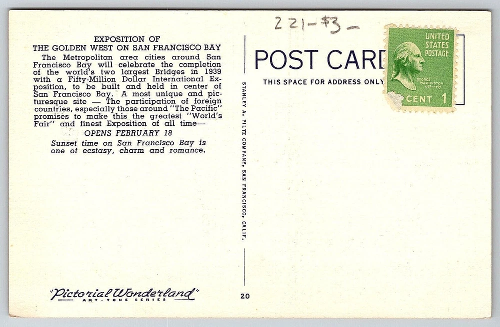 Original Vintage Postcard Sunset On San Francisco Bay Exposition Of Golden West