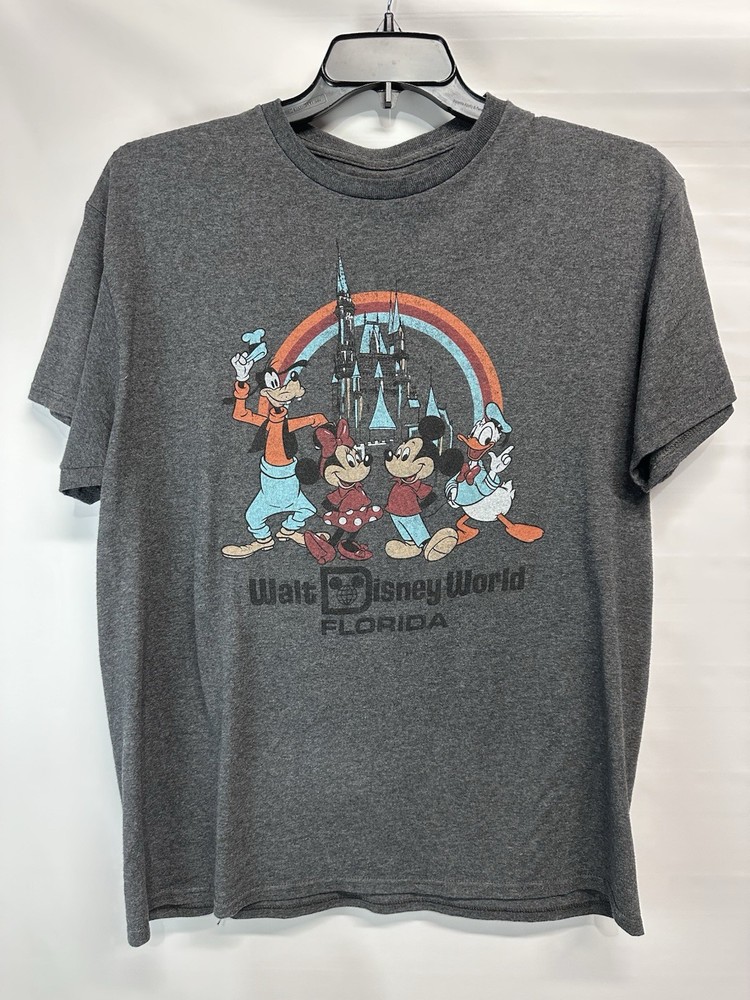 The Walt Disney World Original tee T-shirt in size Large features the iconic Mickey Mouse character from the Disney franchise. The gray shirt is suitable for both men and women and is a must-have collectible item for fans of Disney merchandise. With the official Disney branding, this shirt is a timeless piece of apparel that celebrates the beloved characters and themes of the Disney universe.