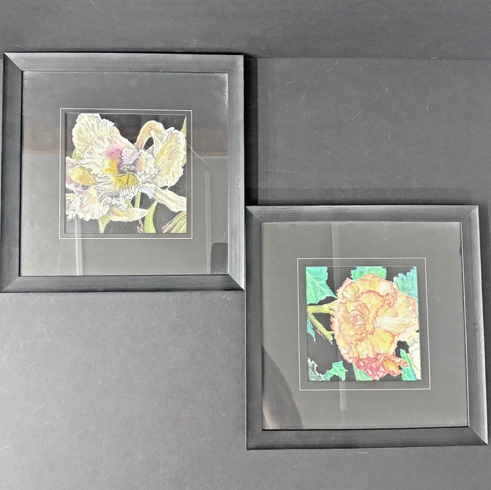 Delve into the delicate charm of floral art with this original pair of watercolor paintings by SOWA. Each piece, featuring iris and begonia, captures the intricate beauty of flowers in a realistic yet still life style. The artist's skillful use of watercolor technique brings a one-of-a-kind vibrancy to each petal, stem, and leaf, creating a visual feast that celebrates both the art of nature and the nature of art. SOWA's American culture-inspired work, framed and measuring 13.5"x13.5", is a testament to the timeless allure of floral themes. These small, exquisitely crafted paintings on paper hail from Washington, USA, and were produced between 2000 and 2009, offering a contemporary take on a classic artistic tradition.