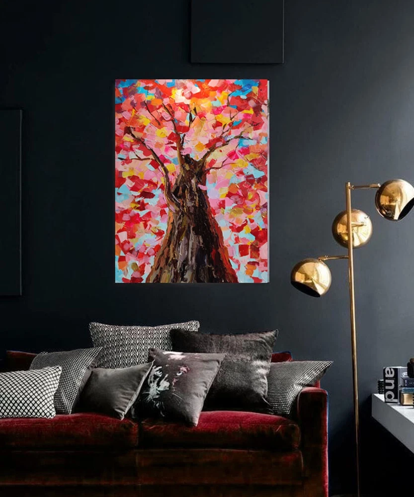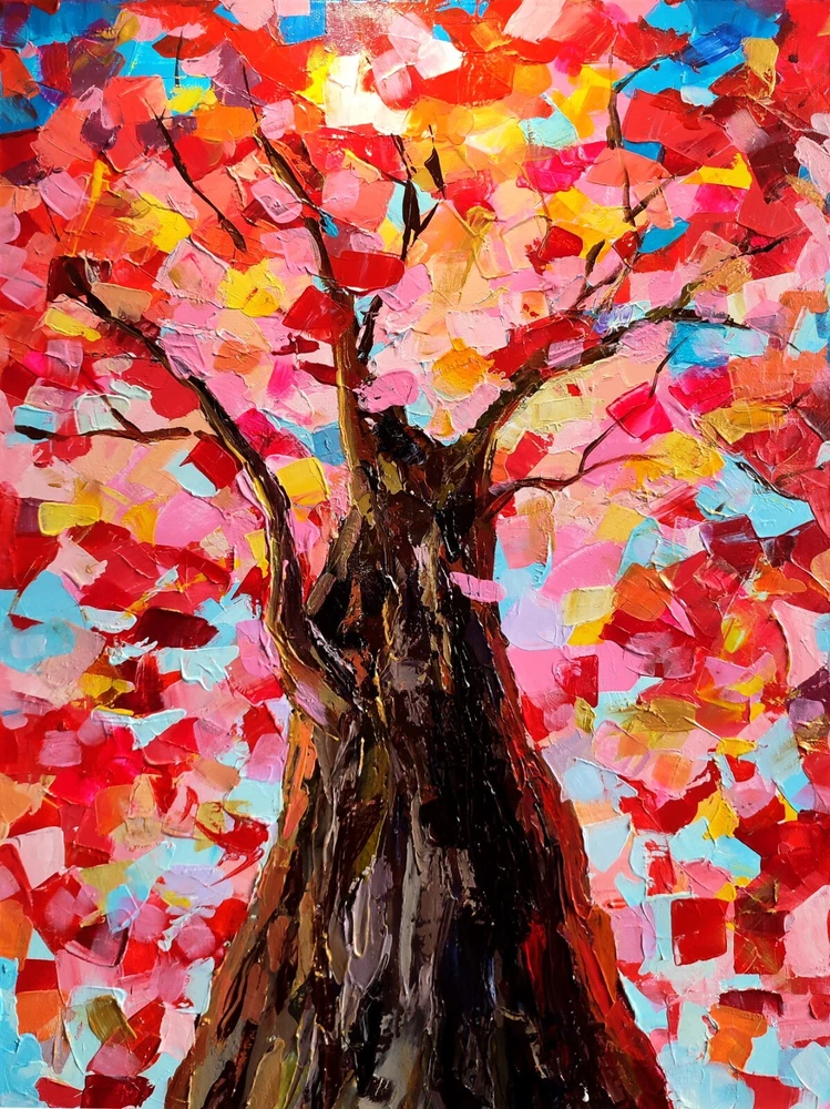 This beautiful original acrylic painting depicts a colorful tree in an impasto style, using a palette knife to create a unique and one-of-a-kind piece. Measuring 27x20 inches, this large canvas is unframed and signed by the artist, Leyla Zhunus. The painting was produced in 2021 in Kazakhstan and is a perfect addition to any art collection.The painting features a variety of themes including nature, art, nautical, Americana, amusement parks, and floral, making it a great conversation starter. It is handmade with high-quality materials including canvas and acrylic, and is sure to make a statement in any room. This ultra-contemporary piece is perfect for those who appreciate original, one-of-a-kind art. -ORIGINAL painting. This is not a copy or print. -Professional quality artists light fast acrylic paints on canvas using a palette knife. -Signature on the front and on the back. -Size: 50*70 cm. / 27x20" inches -Free shipping with tracking number
