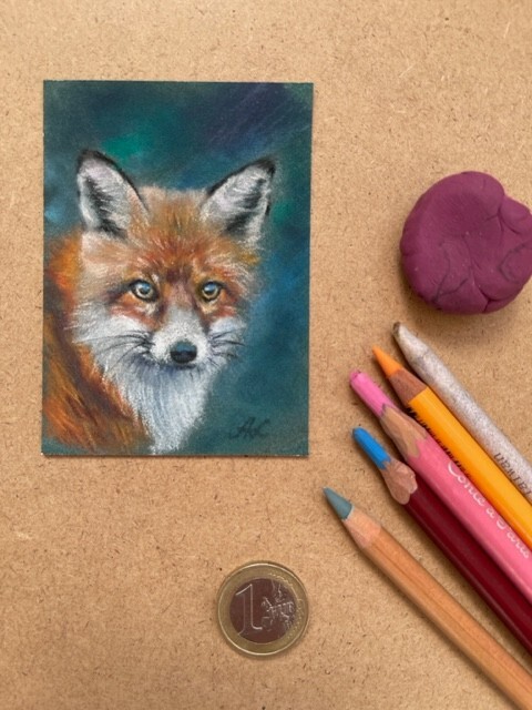 Original pastel fox red fox drawing in ACEO format by artist