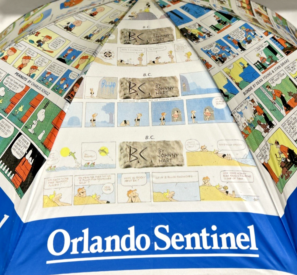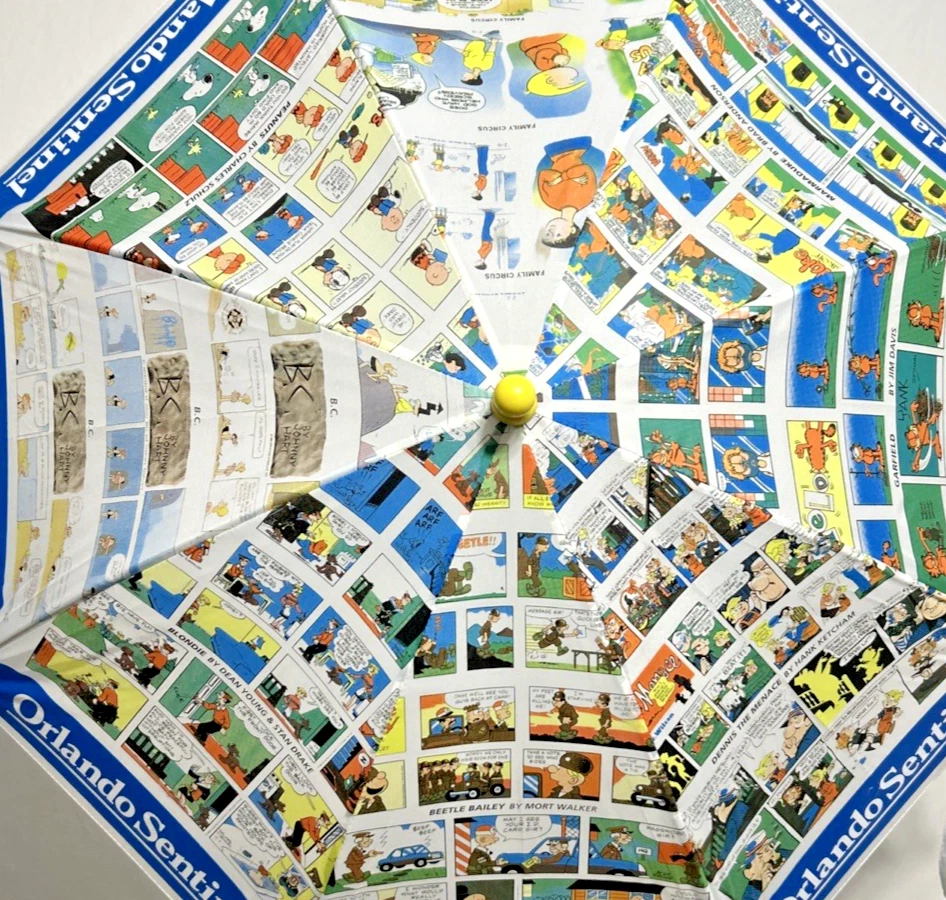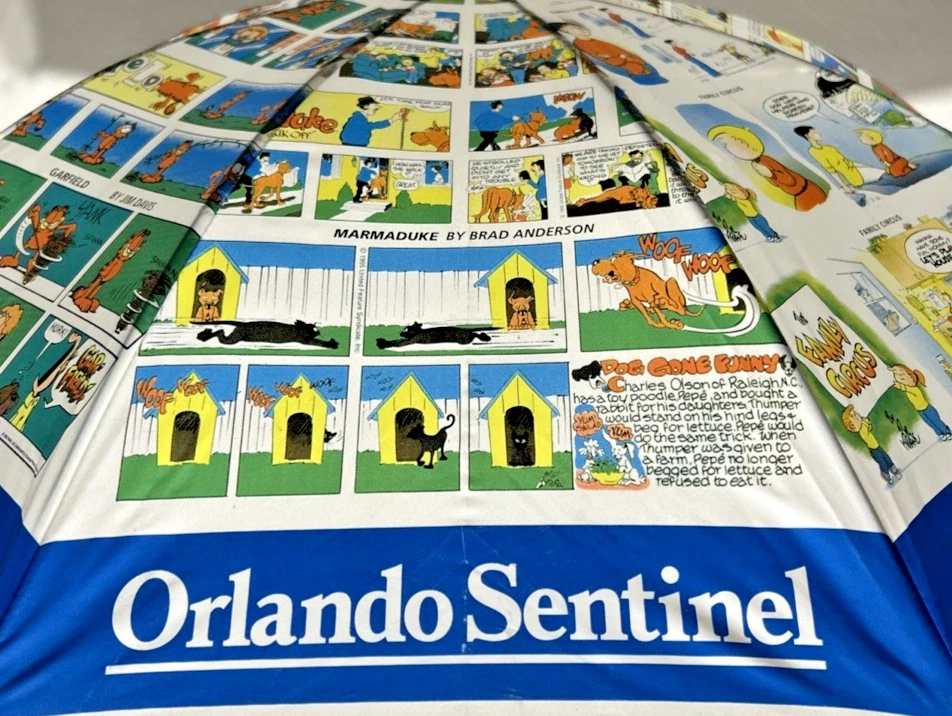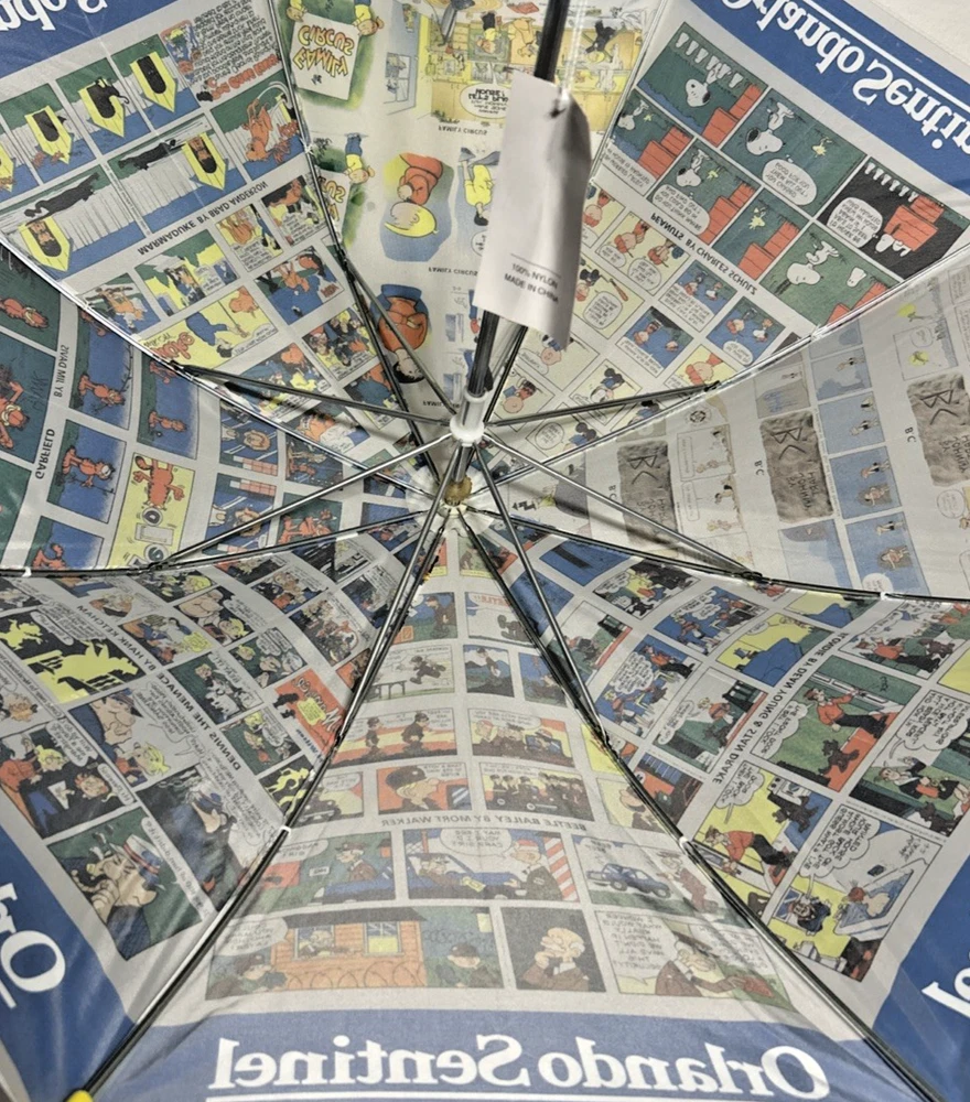 Orlando Sentinel Comics Umbrella Parisol Yellow Handle 23" NEW Garfield Blondie B.C. Beetle Bailey Dennis The Menace Marmaduke Family Circus Peanuts Snoopy Charlie Brown Garfield Blondie B.C. Beetle Bailey Dennis The Menace Marmaduke Family Circus Peanuts Snoopy Charlie Brown New with Tags - NWT - Please see Pictures for Details