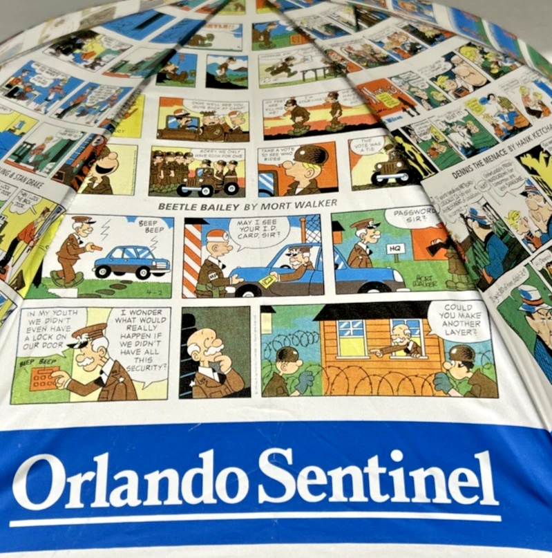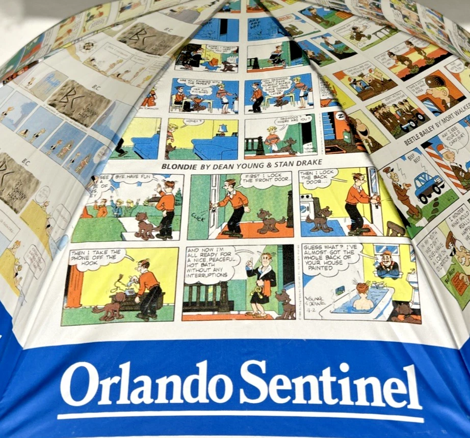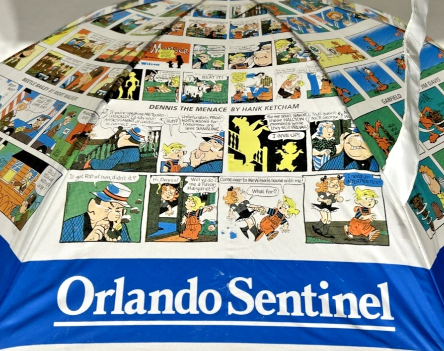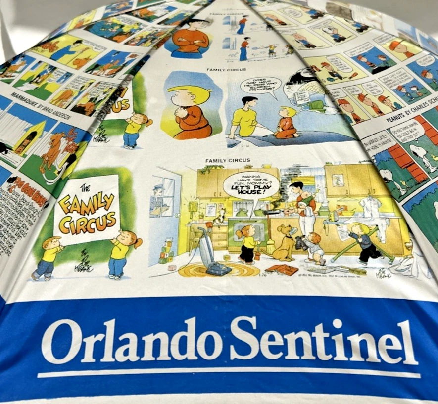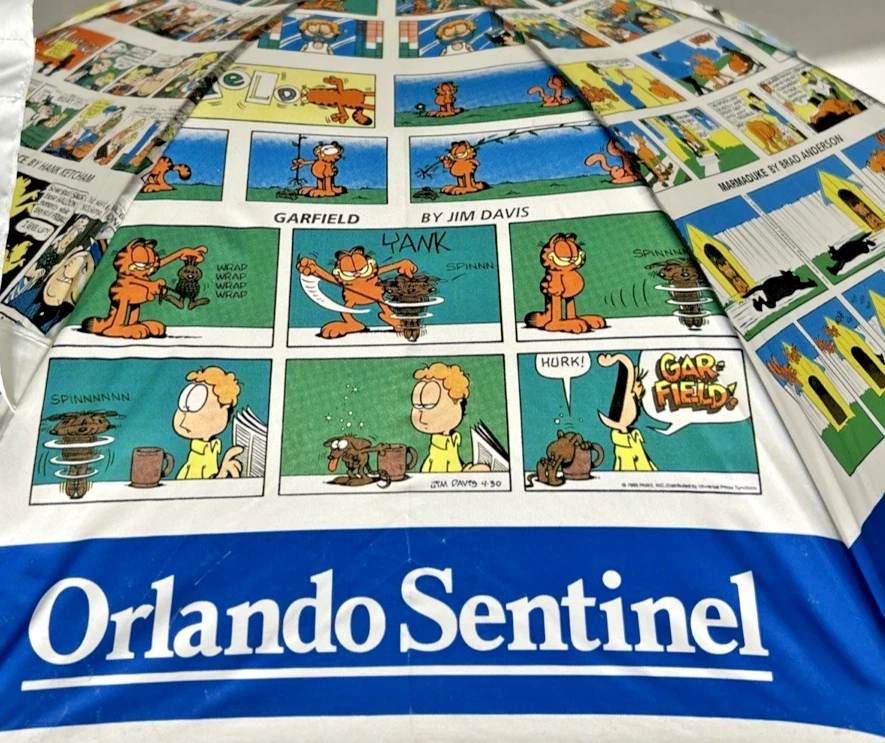 Orlando Sentinel Comics Umbrella Parisol Yellow Handle 23" NEW Garfield Blondie B.C. Beetle Bailey Dennis The Menace Marmaduke Family Circus Peanuts Snoopy Charlie Brown Garfield Blondie B.C. Beetle Bailey Dennis The Menace Marmaduke Family Circus Peanuts Snoopy Charlie Brown New with Tags - NWT - Please see Pictures for Details