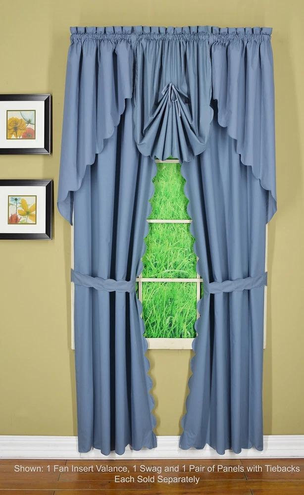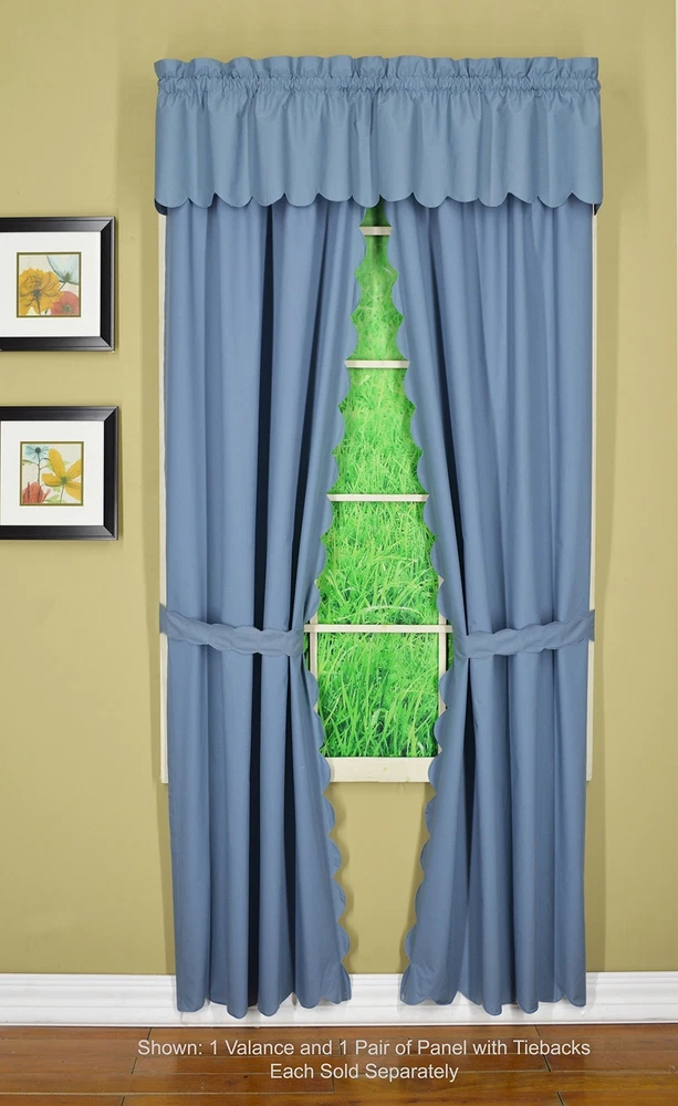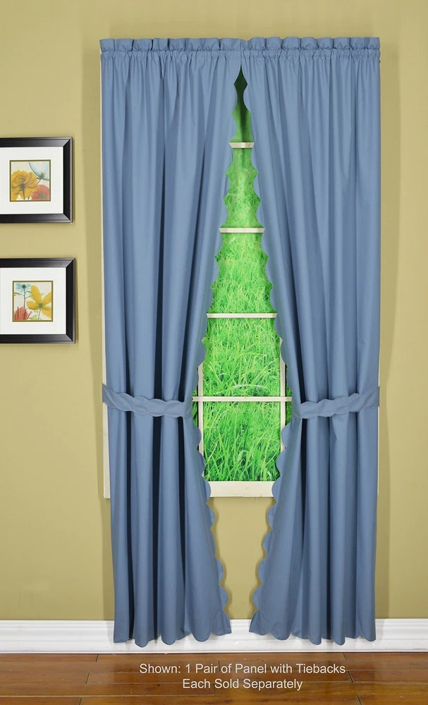 , Orleans Scallop Curtain, Blue 54" Panel Pair and Tieback,4-Piece-Set, 60" W...
