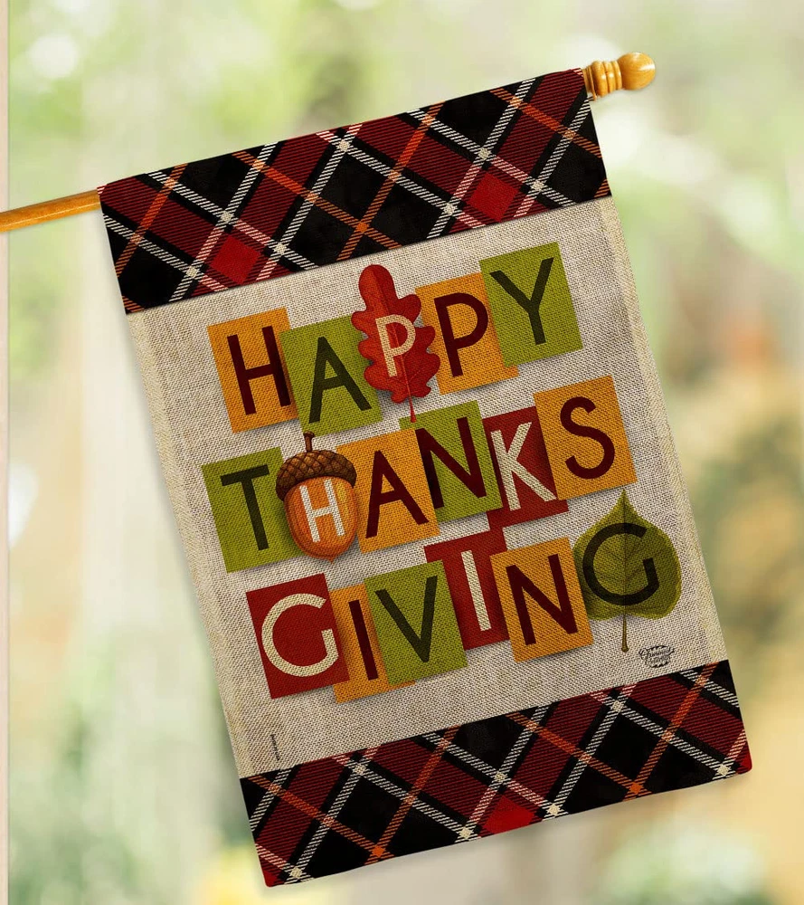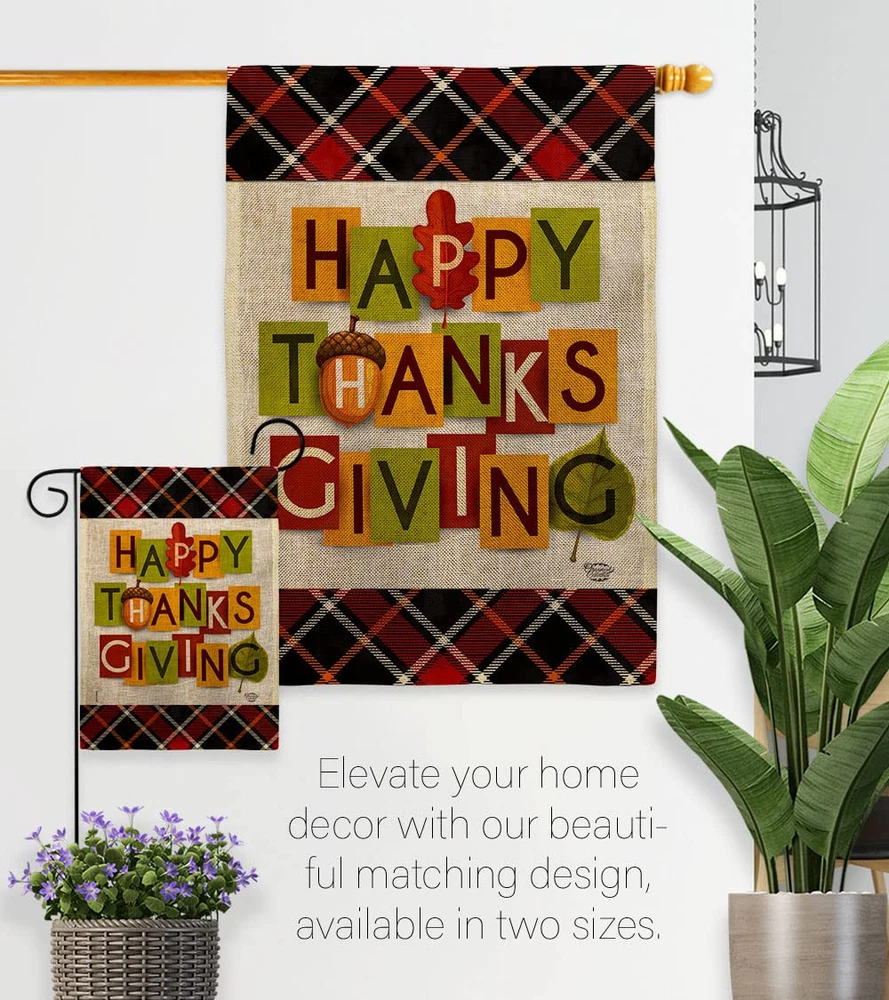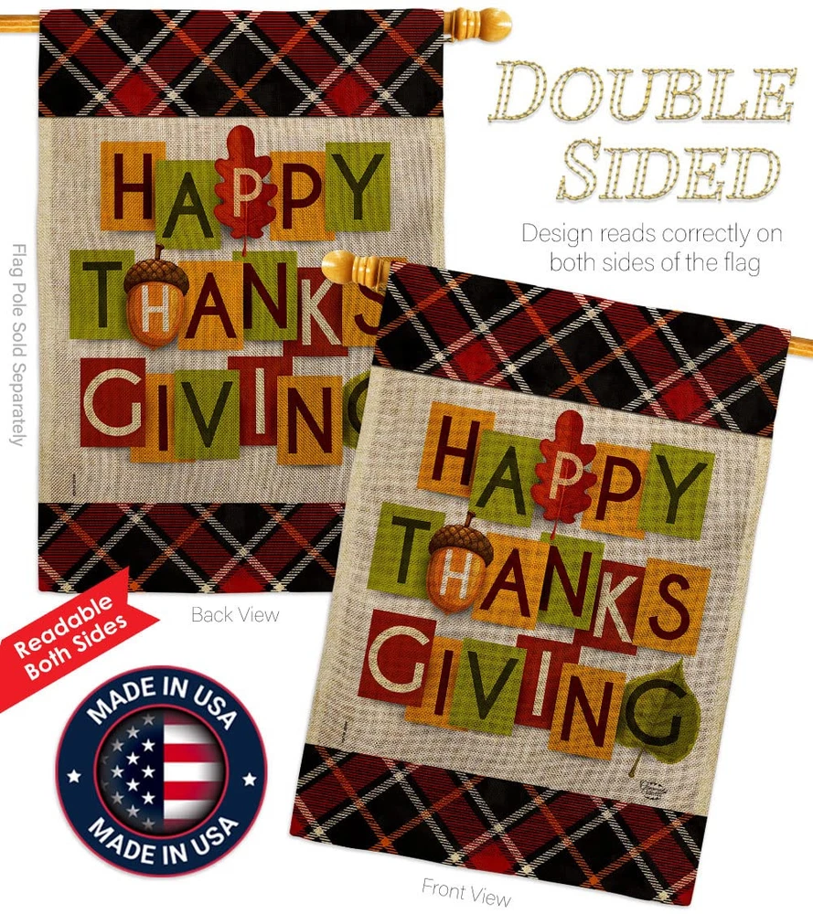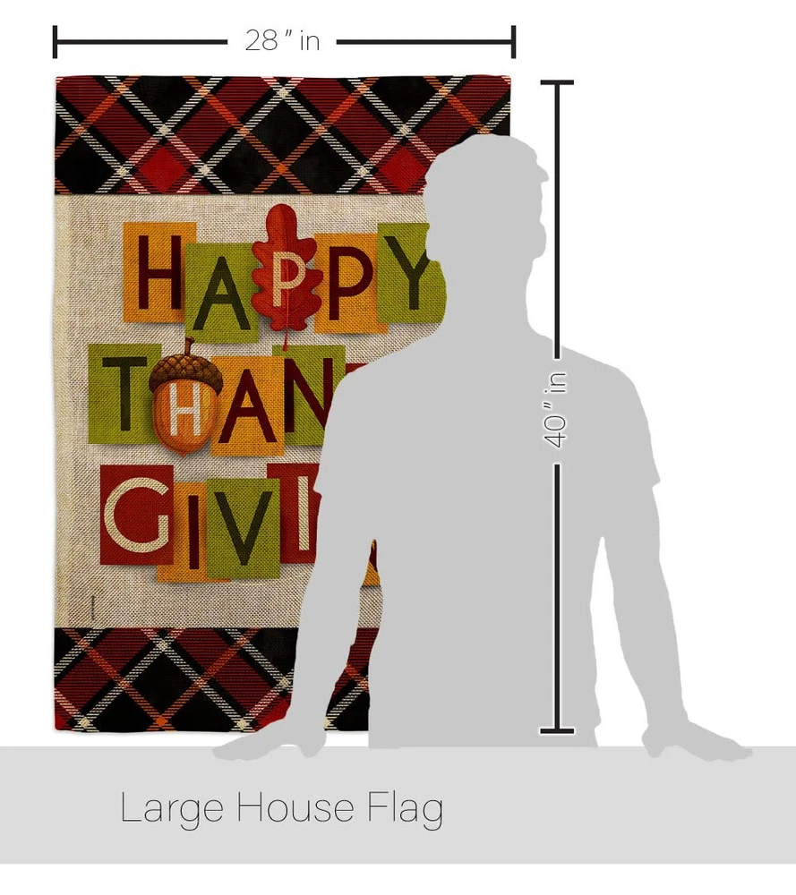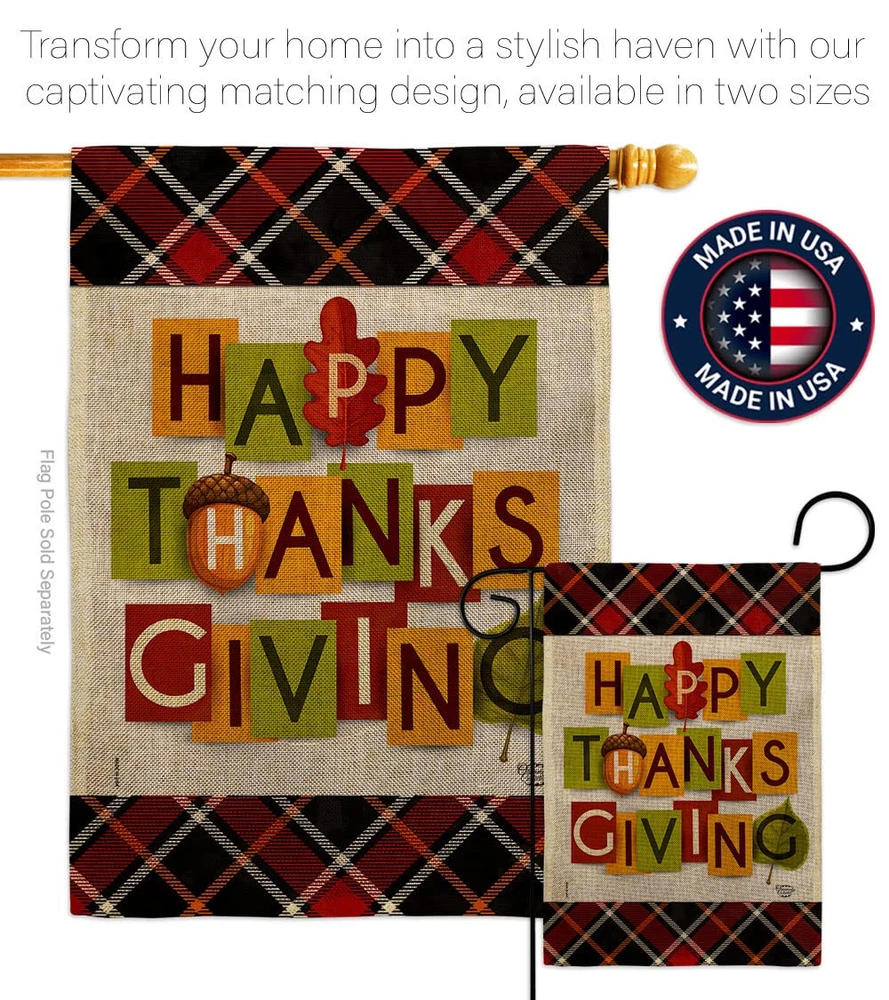 Thanksgiving Beautiful Large House Flag, Wooden Flagpole And Bracket – Wall Mount Complete Set with Wood Banner Dowel with String - 2" x 32" HangerOrnament Collection have variety of House Flag Set for all occasions. Uniquely design for hanging indoor or outdoor use. We are committed to offering you exceptional values. Our customers enjoy displaying our House Flag Set for longer periods. Specification: Theme: Thanksgiving Size: House Flag Set 28" x 40" Size: Decorative FlagPole With Adjustable Angle Flag Bracket Print: Double-Sided Readable: Readable Both Sides Material: Weather Resistant Double Burlap Stitching: Double Stitched Display: Vertical Hang Type: Sleeve Artist: © Eva Lee Special Features: Origin: Made In USAPackage Include: 1 pc x Large House Flag 28" x 40" 1 pc x Decorative Flag Pole 1 pc x Adjustable Angle Wall Mount Flag BracketFor more than a decade, we’ve been dedicated to manufacturing flags with no comparison in quality and beautiful designs. Our flags are made with our Pro Guard material that is soft to the touch and designs can be read correctly on the flag. A feature that our customers will love. We are committed to using eco-friendly inks that won’t leave a foot print in our environment. MPN: OC-TG-HS-192632-IP-DB-03-D-US21-OC 92632 92632 PROUDLY Made In USA - Package And Product Designed In California PURCHASE WITH CONFIDENCE - From Ornament Collection's US Authorized Resellers MADE OF DURABLE - 100% Thick Double Burlap Fabric construction helps resist the wear and tear from frequent use TEXT READABLE BOTH SIDES - House Flag Set Double-Sided Print DURABLE FLAG - Double stitching panels on multiple rows and high quality Sleeve to provide lasting strength VIBRANT COLORS - With UV-Resistant Maintains Its Colors All Season Long FEATURES - Free Flag Pole & Adjustable Bracket Hardware Screw Included!
