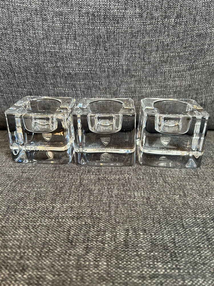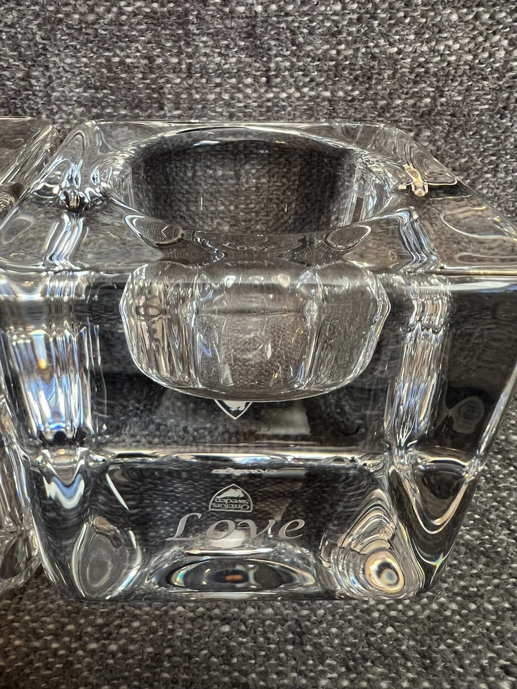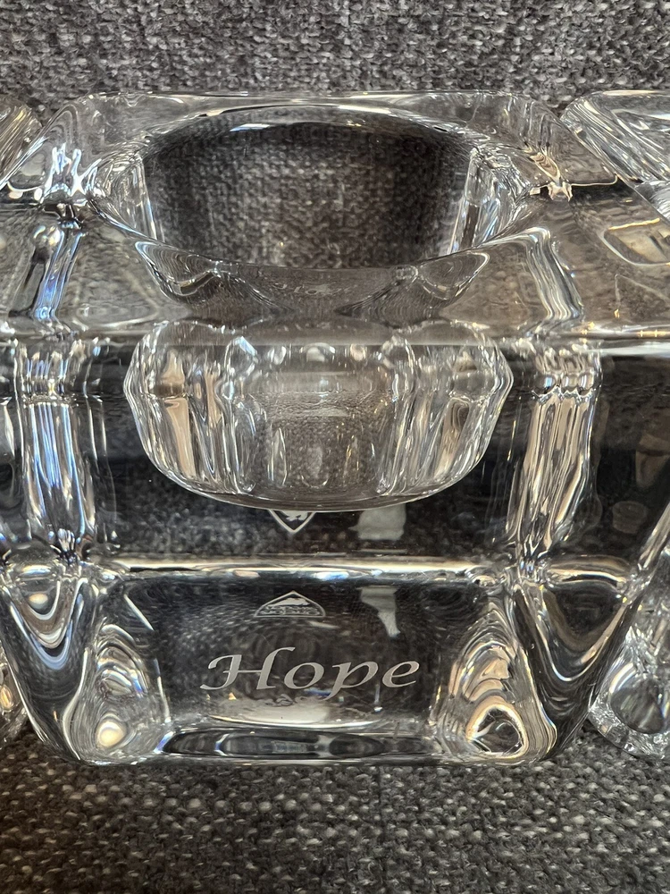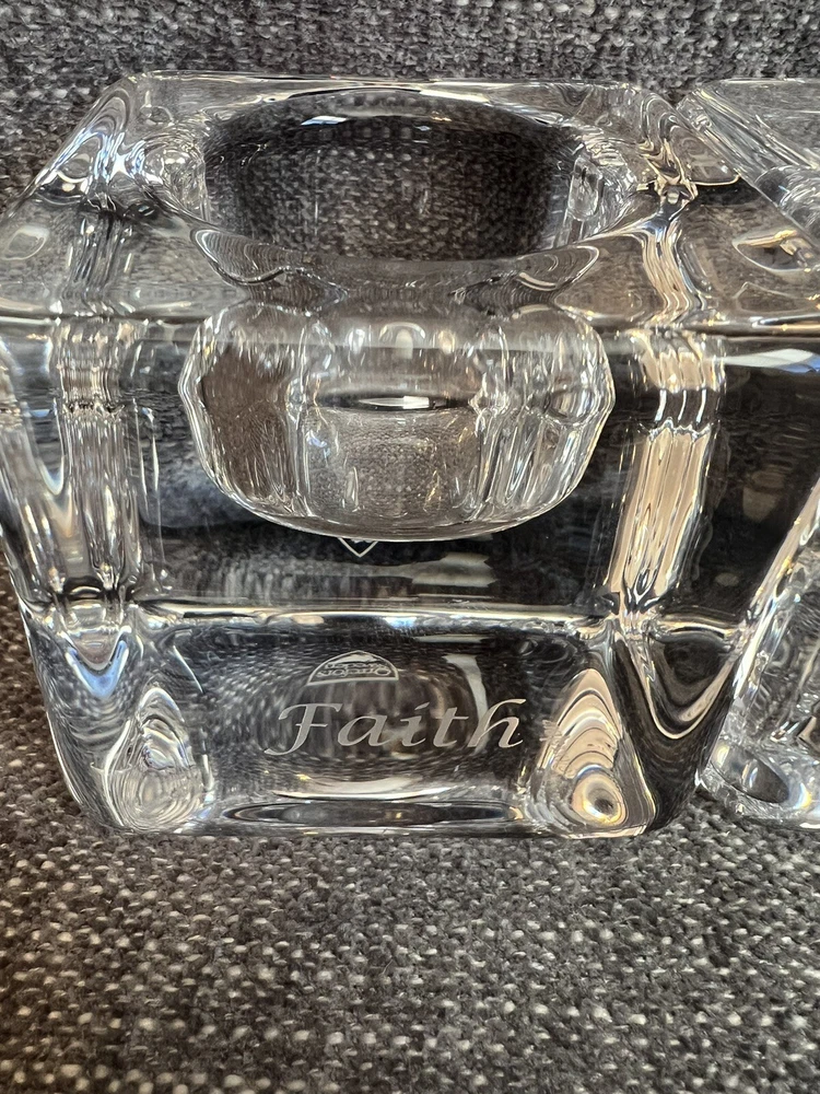 Orrefors 3-Piece SENTIMENTS Ice Cube Votive Set ("Faith, Hope, Love") perfect condition. Beautiful votive set. Great wedding gift.