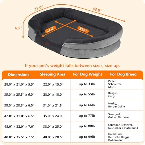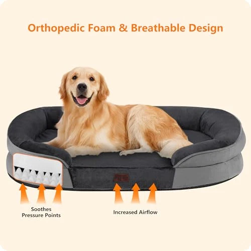 Return Policy Fast Delivery Trusted seller Orthopedic Dog Bed for Large Dogs, Waterproof Dog Sofa with Egg Foam Support, Washable Pet Bed with Four Sided Bolster Cushion, with Removable Cover & Non-Slip Bottom, 42 Inches, Dark Gray Product Description Orthopedic Egg Crate Foam: 4" high egg crate foam at the bottom of the dog bed is soft, breathable and flexible, which provides even support for your dog's joints and muscles, effectively relieving the pressure on the joints of older dogs and making them feel relaxed and comfortable. Waterproof Liner, Removable and Washable: Don't worry about wetting the dog bed, the waterproof cover on the mattress fully protects the egg crate foam from spills, water damage or accidents; the zipper design makes it easy to remove the cover in seconds, and the removable cover supports machine washing and low-temperature tumble drying. Pet Friendly Design: Thick pillow with wrap-around design on all sides is made of high quality PP filling, excellent head and neck support allows your dog to snuggle up to the bed. High quality flannel material is soft and cozy, allowing your dog to sleep more peacefully. The lower entrance in the center is designed to make it easy for dogs to get in and out. Non-Slip Bottom: This dog bed is suitable for use on the floor, in crates and playpens, the non-slip bottom design ensures the stability and safety of the pet bed and protects your dog. Multiple Sizes: We offer 6 sizes for you to choose from, please choose the right size according to your dog's size and weight. Your furry friend can't wait! Get ready to receive compliments from your friends! Shipping Returns Payment Shipping Shipping is FREE to all addresses other than APO/PO boxes in the lower 48 states. All our stock ships from US-based warehouses. Shipped via USPS or UPS (depending on location and package weight) Unless stated otherwise, all orders will ship within 24-72 hours of your payment being processed. Check our feedback to see the great reviews of FAST shipping we offer. Returns Seller does not accept returns Payment We currently accept payment via eBay managed payments only. Once payment is cleared, we will dispatch your shipment within 1-3 business days. Please refer to the "Shipping" tab for more information regarding shipping speed to your destination.