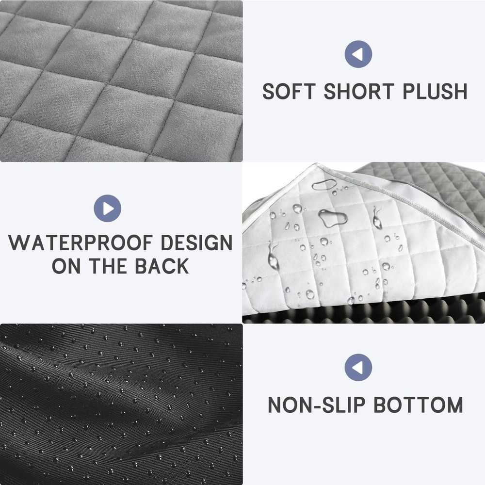 Orthopedic Dog Beds for Large Dogs with Removable Washable Cover, Dog Crate Bed for XXL XL Large Medium Dogs, Velvet Plush Pet beds, Anti-Slip Bottom Sleeping Kennel Pad Mat, Grey 【Waterproof Lining & Ultra-Soft】There is no need to worry about the dog wetting the large dog bed, because there is a waterproof layer under the plush surface of the dog crate bed, which can prevent liquid leakage and fully protect the egg foam. 【Velvet Surface & Anti-slip Bottom】Cozy dog bed pad has an ultra-soft velvet sleep surface and it provide the perfect balance of comfort and breathability as well as better protection against biting, scratching, damage.There are non-slip plastic dots on the bottom of the dog crate bed, so as to bring a sense of security to the dog, keep it in place when your dog is playing. 【Washable Dog Bed】Waterproof pet bed with zippered removable cover that's machine washable for quick cleanup and no-fuss care, Just get the egg foam off, without your concern. and your pet mattress can be clean and soft as new. 【Orthopedic Dog Bed Support】Softer and more supportive than memory foam dog beds our orthopedic large dog bed with 3” high mattress design provides even weight distribution to cushion hips, heads, and tails. It relieves muscle tension and encourage restful sleep. 【Multiple Sizes & Suitable For Any Scenario】There are 5 different sizes, it's a suitable dog bed pad for medium, large and extra large dogs.The dog bed can be used in a variety of scenarios, including dog cages, cars, indoors and outdoors.It can be used as a crate mat, kennel bed, cage bed, or even as a dog travel bed in a car or truck.