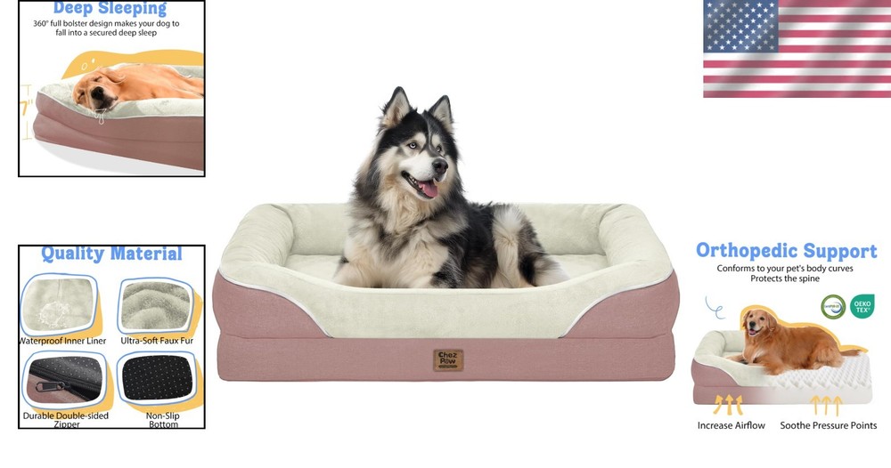 Orthopedic Waterproof Dog Bed with Removable Cover for Pets Up to 50 lbs