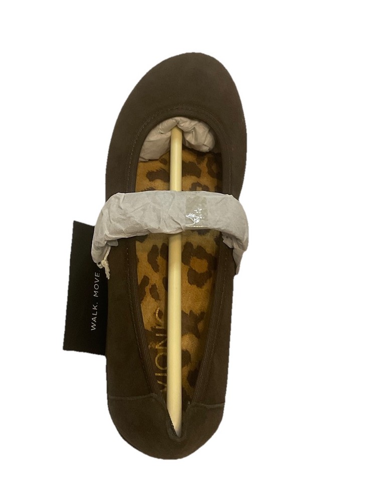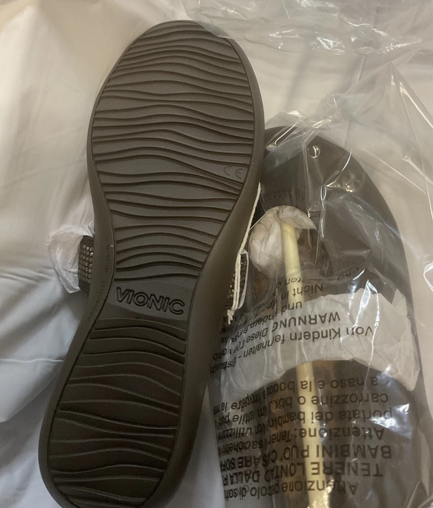 This is a pair of women's Vionic Orthaheel shoes in dark brown leather with an elastic decorative strap. They are slip-on style with a low heel height, suitable for casual occasions. The shoes feature comfort technology and are designed for standard shoe width. They are ideal for summer, fall, and spring seasons. The shoes are a size 3 in UK sizing, which corresponds to a size 5 in US sizing.
