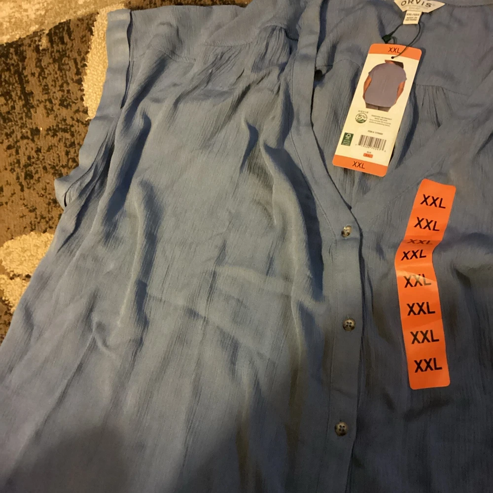 Orvis Ladies' Button Front Blouse Short Sleeve Size XXL Blue NEW