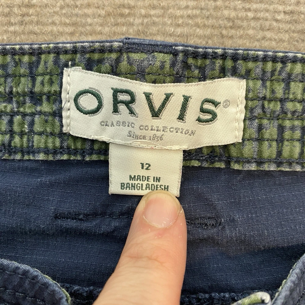 Size Type: Regular Department: Women Type: Pants Style: Ankle Features: Pockets, Stretch Rise: Mid (8.5-10.5 in) Season: Fall, Spring, Summer, Winter Garment Care: Machine Washable Size: 12 Closure: Button Inseam: 26 in Material: Cotton, Spandex Theme: Beach, Nature Fit: Relaxed Country/Region of Manufacture: Bangladesh Fabric Type: Knit Occasion: Casual, Travel, Workwear Front Type: Flat Front Leg Style: Straight Color: Blue Pattern: Solid Personalize: No Handmade: No Brand: Orvis