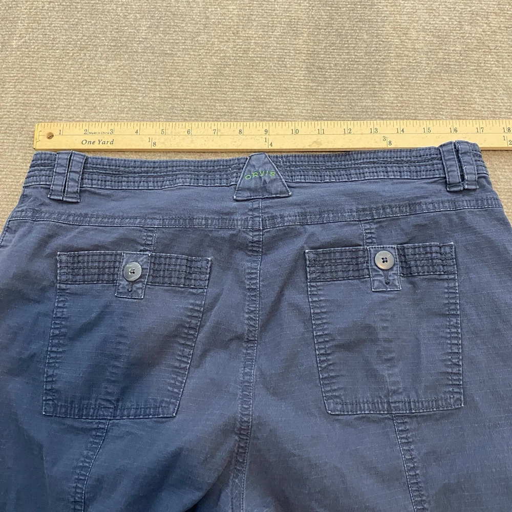 Orvis Pants Women's Size 12 Blue Pockets Casual Ankle Roll Up Rip Stop Stretch