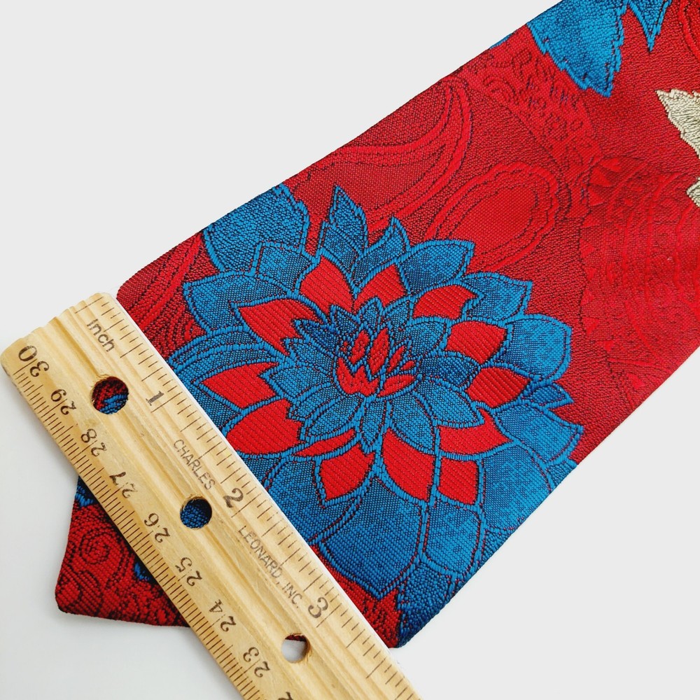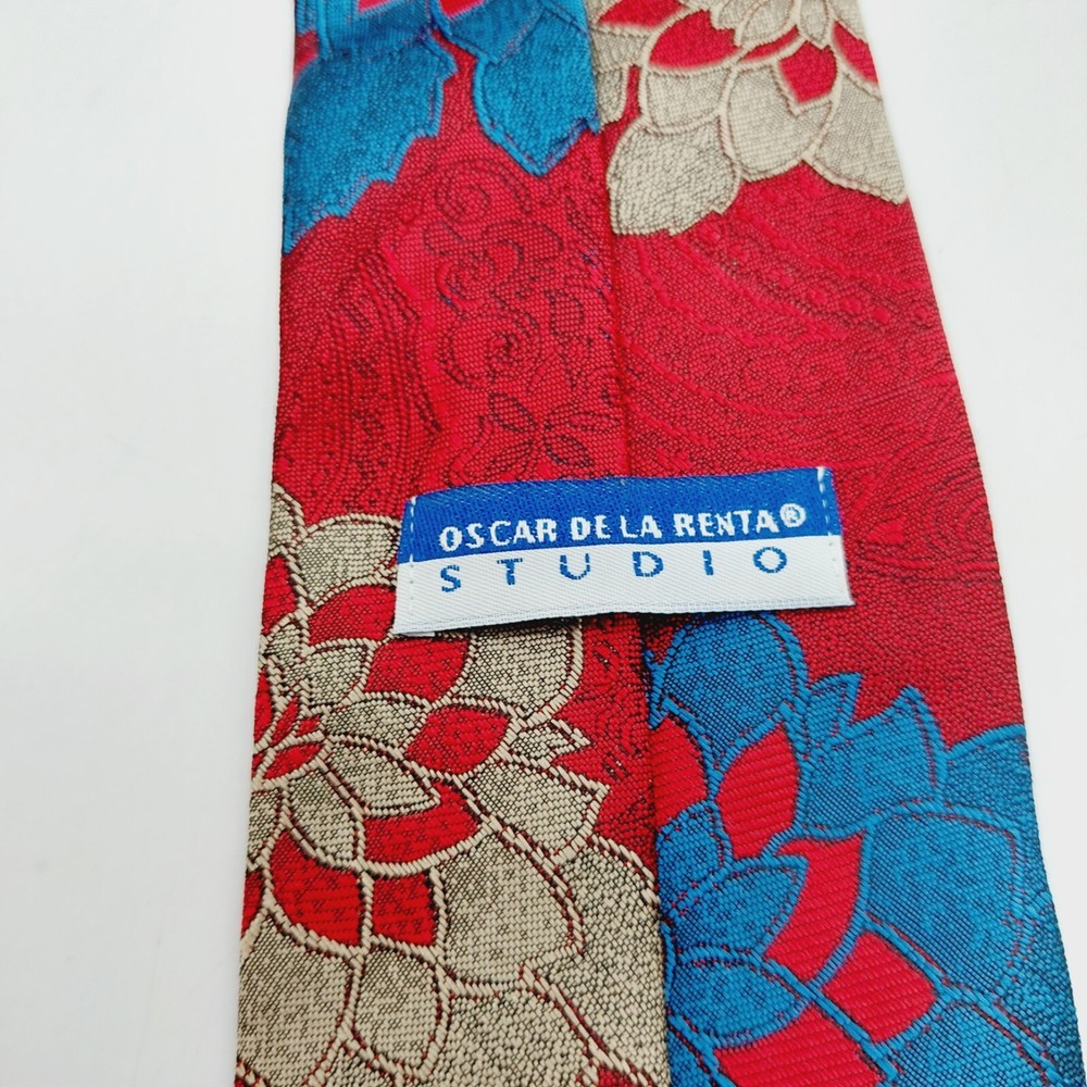 Oscar De La Renta Studio Neck Tie Red Blue Floral Design Necktie 59" x 3.75"