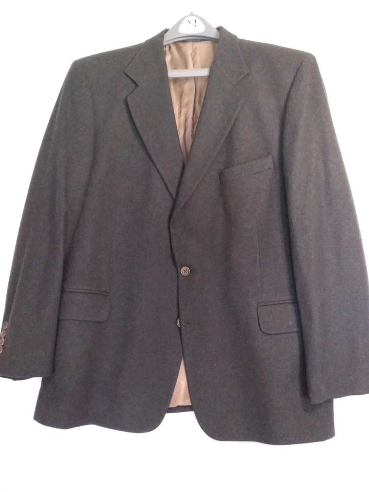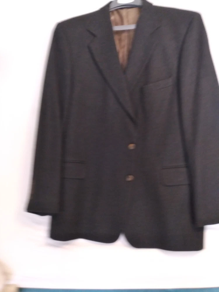 Oscar de la Renta Sport Coat NO size tag ESTIMATED/measured at 46 regular Dark, dark green with flecks of brown and burnt orange Lightweight wool Necktie pictured comes with. Length laying flat, bottom of collar to hem = 33 inches Shoulders, laying flat = 19 Chest, laying flat = 23.5 Sleeve = 26