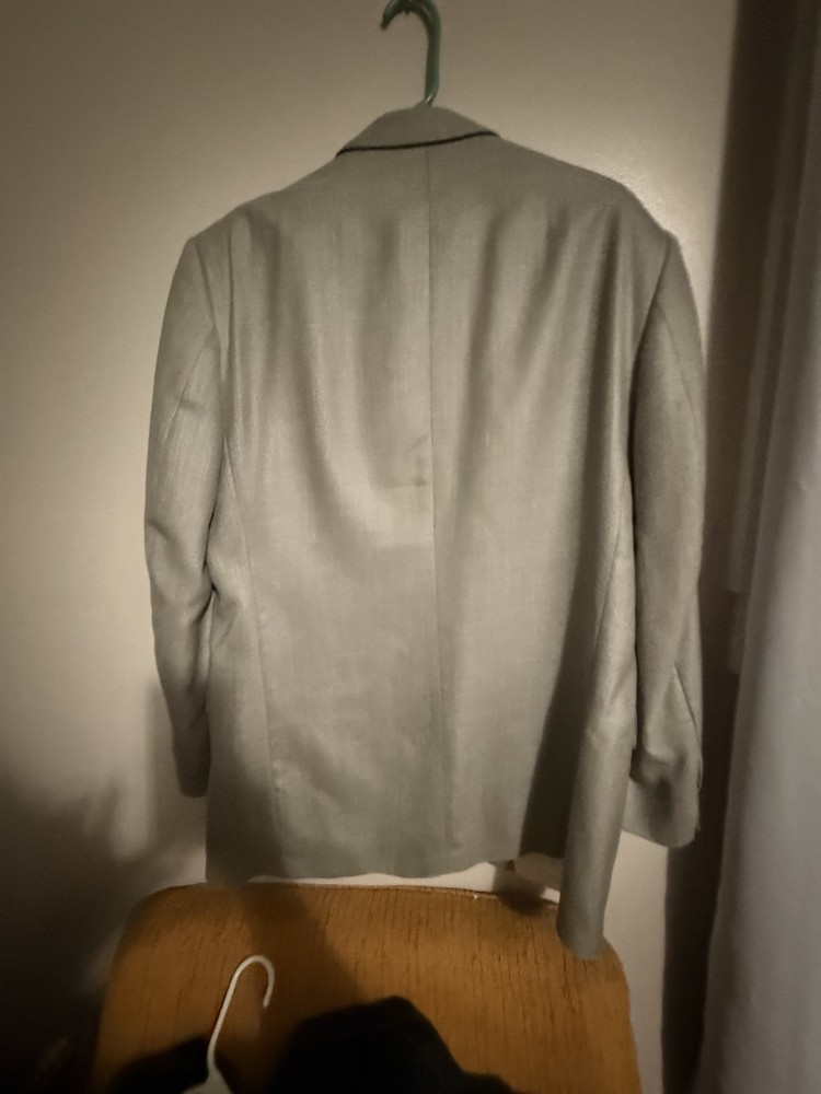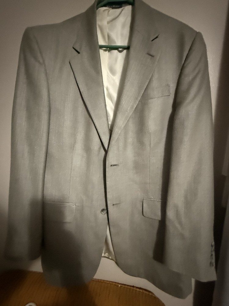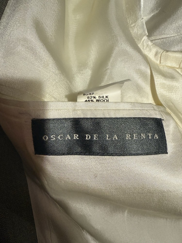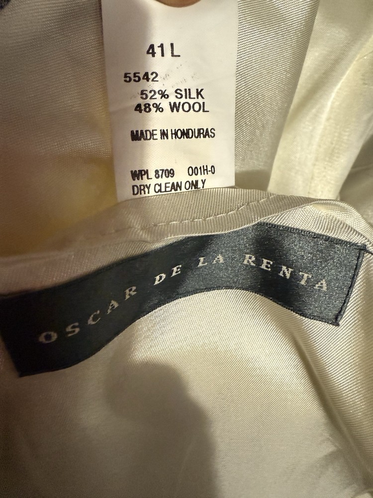 Exude timeless sophistication with this Oscar de la Renta sport coat. A refined silhouette and subtle texture create an air of understated elegance. The jacket features a classic two-button closure, notched lapels, and a comfortable, tailored fit. The luxurious blend of silk and wool offers a soft feel and a beautiful drape, ensuring both comfort and style. Perfect for a business meeting, a formal dinner, or a special occasion where you want to make a lasting impression. Keywords: Oscar de la Renta, silk blazer, wool blazer, sport coat, gray blazer, mens blazer, 41L, luxury blazer, formal wear, business casual, classic blazer, tailored fit, designer blazer