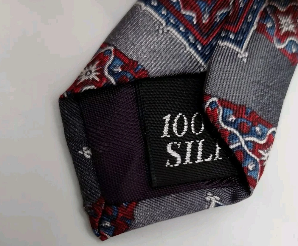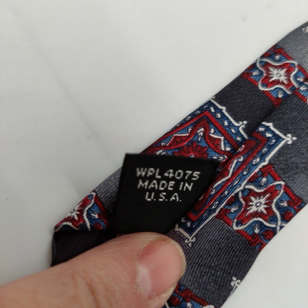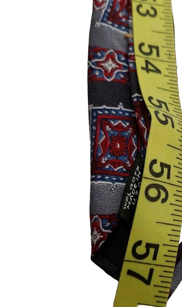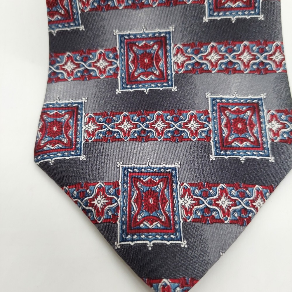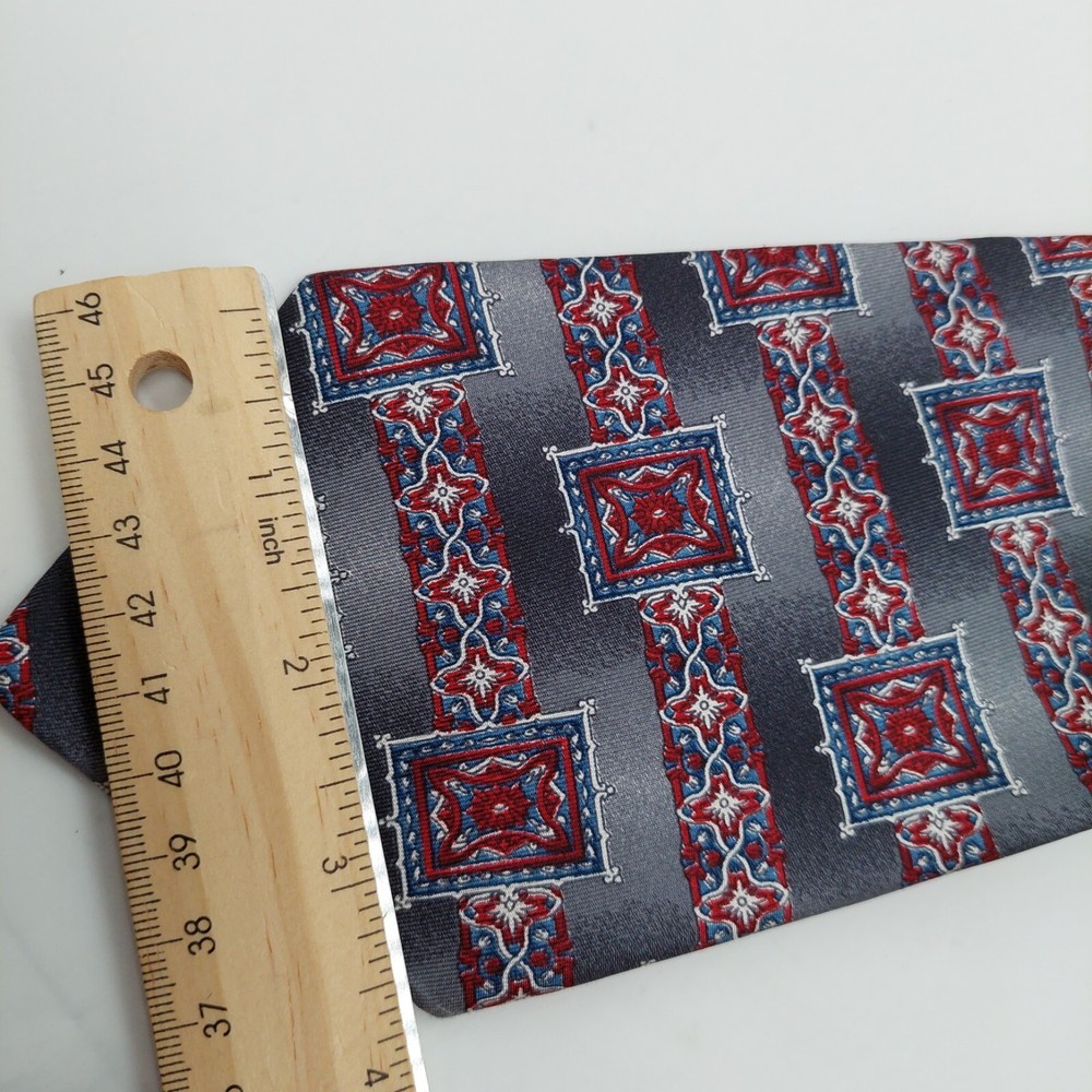 Oscar de la Renta Mens Gray Red Geometric Silk Tie Vintage 57 Inch