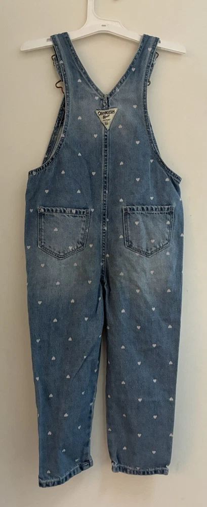 OshKosh B'Gosh Toddler Girls Heart Print Adjustable Strap Denim Overalls Blue 4T. Condition is pre-owned. Smoke free, pet free home. Shipped via USPS Ground Advantage. In very good condition. Free of rips or stains.
