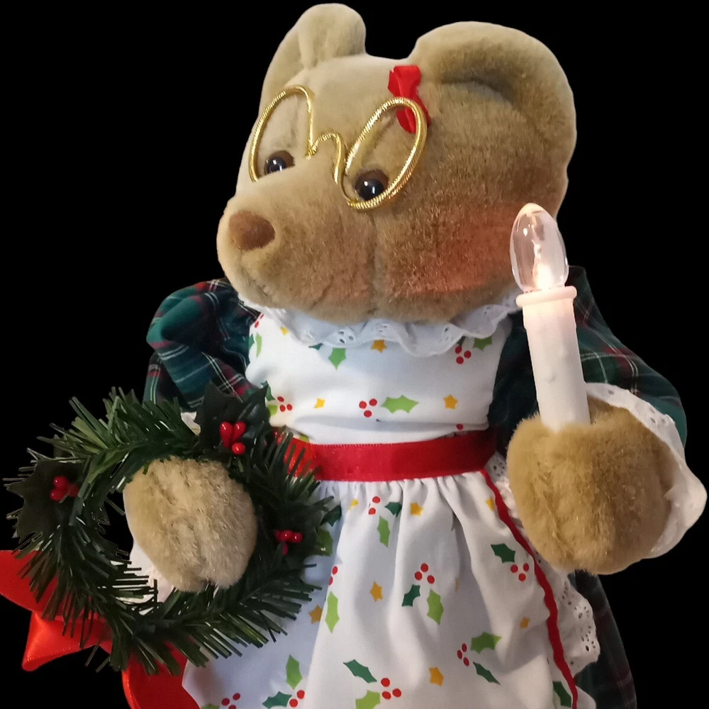 Vintage Avon Grandma Animated Musical Christmas Bear With Light & Motion 13"t **This bear lights up and plays music. The motion is NOT working.** F-4