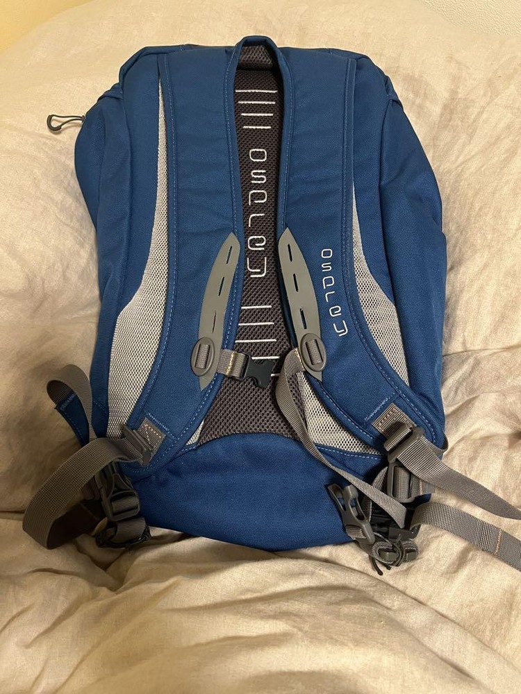 Osprey Navy Flapjack Rucksack Backpack 25L Adjustable Straps Used Key Features - **Brand**: Osprey - **Product Type**: Backpack - **Model**: Not specified - **Color**: Navy - **Material**: 900D Polyester - **Size**: 43cm (H) x 33cm (W) x 23cm (D) - **Capacity**: 25 liters - **Weight**: 0.95 kg - **Features**: - Adjustable shoulder straps - Mesh back panel for comfort - Front pocket for additional storage - Embroidered logo design - **Condition**: Good overall condition with some signs of aging in the red-marked area. - **Department**: Unisex - **Number of Pockets**: 1 front pocket - **Closure**: Not specified - **Sport/Activity**: Suitable for various outdoor activities - **Country/Region of Manufacture**: Not specified - Specifications Brand Osprey Country Japan Product Description Item Title Osprey Navy Flapjack Rucksack Backpack Payment Supports managed payments Please pay within 5 days after auction is finished. About Us We are located in Japan. It's our pleasure to make you happy by proposing our recommend item. If you have any questions or request about items, please feel free to ask us. International Buyers - Please Note: -Import duties, taxes, and charges are not included in the item price or shipping charges. These charges are the buyer's responsibility. -Please check with your country's customs office to determine what these additional costs will be prior to bidding/buying. -These charges are normally collected by the delivering freight (shipping) company or when you pick the item up - do not confuse them for additional shipping charges. -We do not mark merchandise values below value or mark items as - gifts - The US and International government regulations prohibit such behavior. Thank you for your understanding.