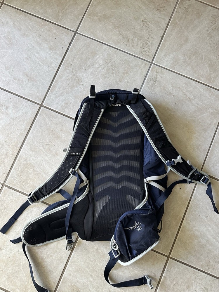 Brand:OspreyMaterial:NylonDepartment:MenColor:BluePersonalized:NoFeatures:Hip BeltSport/Activity:HikingEvent:HikingInsect Repellent Treated:NoClosure:ZipNumber of Pockets:6Capacity:11 to 20LFrame Material:Nylon