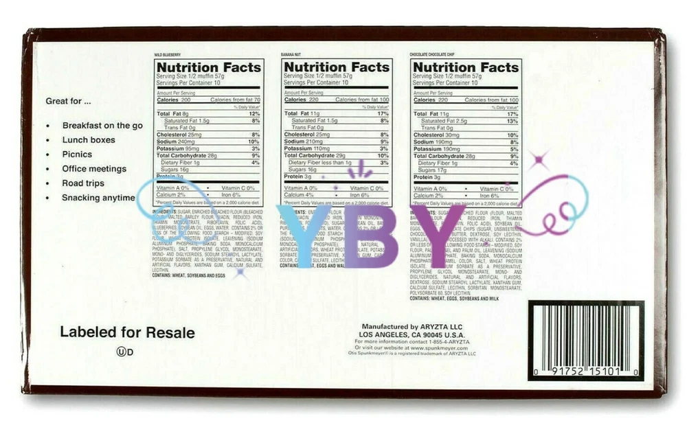 Otis Spunkmeyer Assorted Muffins 15 CT 60 OZ Otis Spunkmeyer three-flavor variety pack Labeled for resale and individually wrapped Otis Spunkmeyer muffins are ideal for concessions, foodservice and c-stores 15 Packs - 4 oz (113g) NET WT 60 OZ (3 LBS 12 OZ) 1.7 KG EACH PACK Feel free to ask any questions regarding to this item