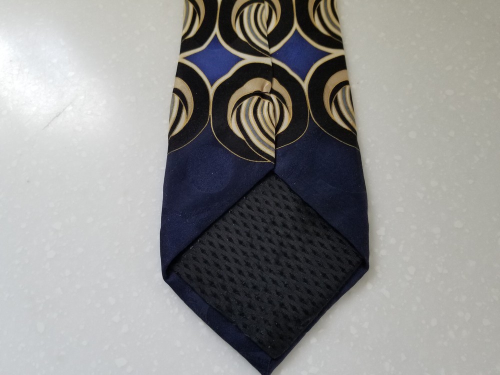 Character: Blue Department: Men Handmade: Yes Style: Designer Item Length: 59 in Item Width: Classic Brand: Handmade Type: Tie Color: Black Material: Silk Seller Notes: “Very good pre-owned condition” Fabric Type: 100% Silk Pattern: Geometric