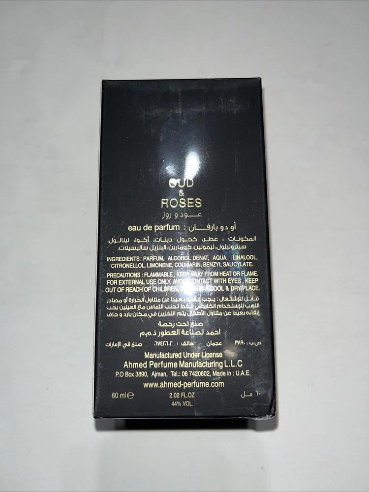 Brand:Ahmed Al MaghribiType:Eau de ParfumFeatures:All Natural Ingredients, Cruelty-Free/No Animal Testing, Long LastingFragrance Name:Oud & RosesScent:OudVolume:60mlFormulation:SprayCountry/Region of Manufacture:United Arab EmiratesSize Type:Regular Sizegtin13:Does not applyUPC:Does not applyMPN:Maghribi