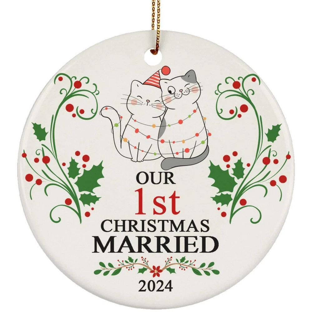 Our 1st Years Christmas Married Ornament Gift 1 Anniversary With Cat Couple