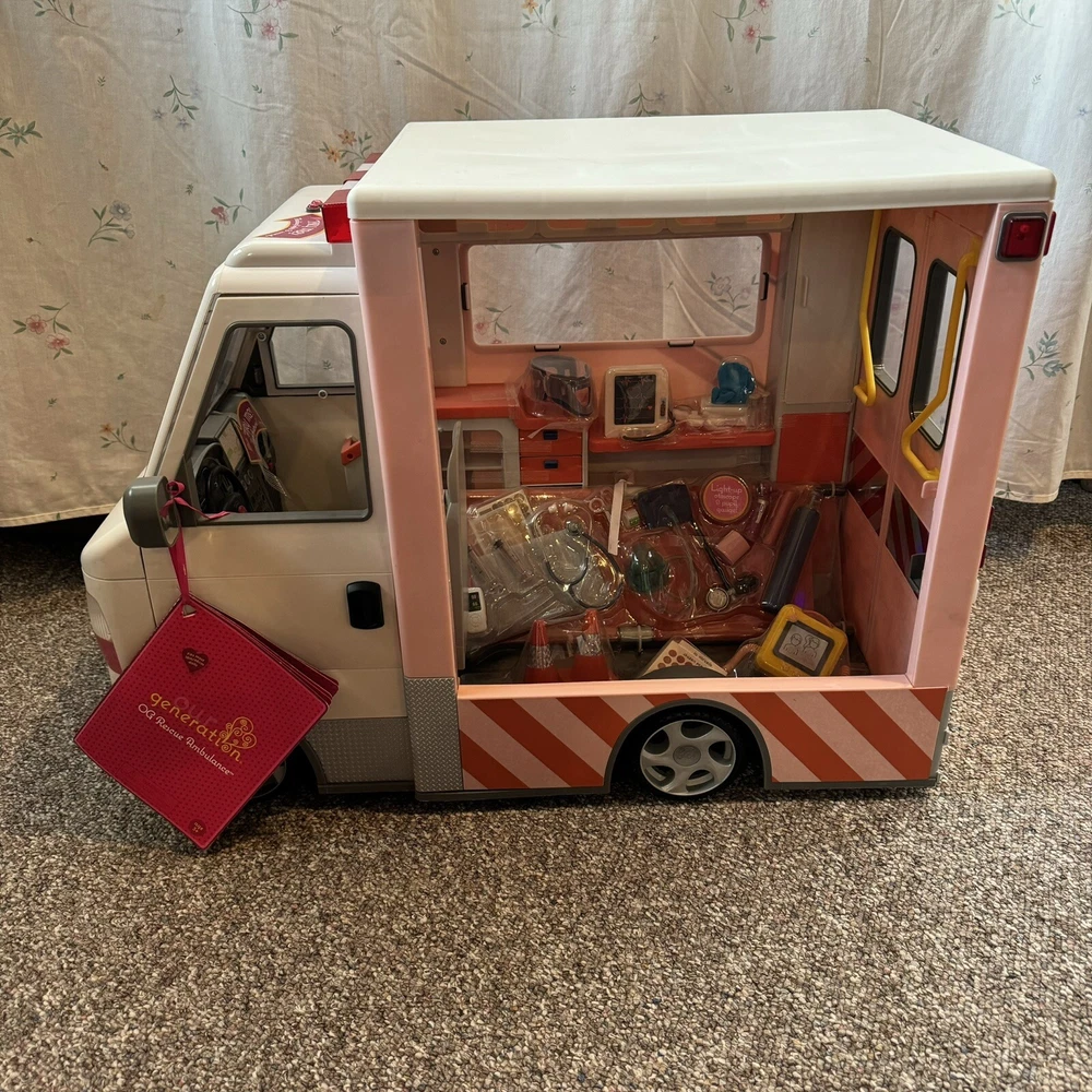 Time Period Manufactured: 2020-Now MPN: 79391567 Year Manufactured: 2020 Room: Outdoor Item Height: 15.75 in Antique: No Brand: Our Generation UPC: 0062243419049 Furniture Type: TV & Entertainment Stand Doll Type: 18" Dolls Type: Ambulance Playset Vintage: No Character: Doll gtin13: 0062243419049 Doll Age Group: Adult, Teen, Child Doll Gender: Girl Doll Compatible Doll Size: 18 in Number of Pieces: 30 Color: Multicolor Set Includes: Electronics Features: No Assembly Required, Assembly Required, Batteries Included, Durable Original/Licensed Reproduction: Licensed Reproduction Age Level: 5-7 Years, 8-11 Years, 3-4 Years Personalized: No Handmade: No Material: Polyester, Plastic, Metal