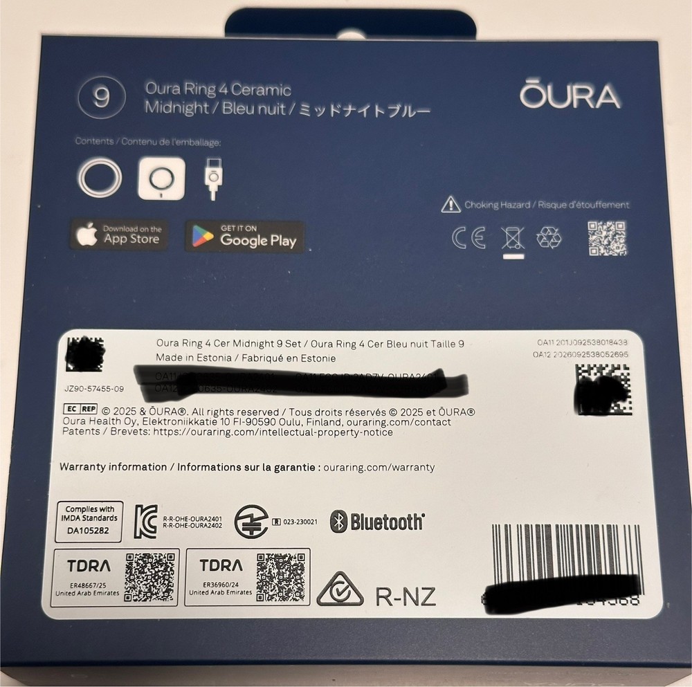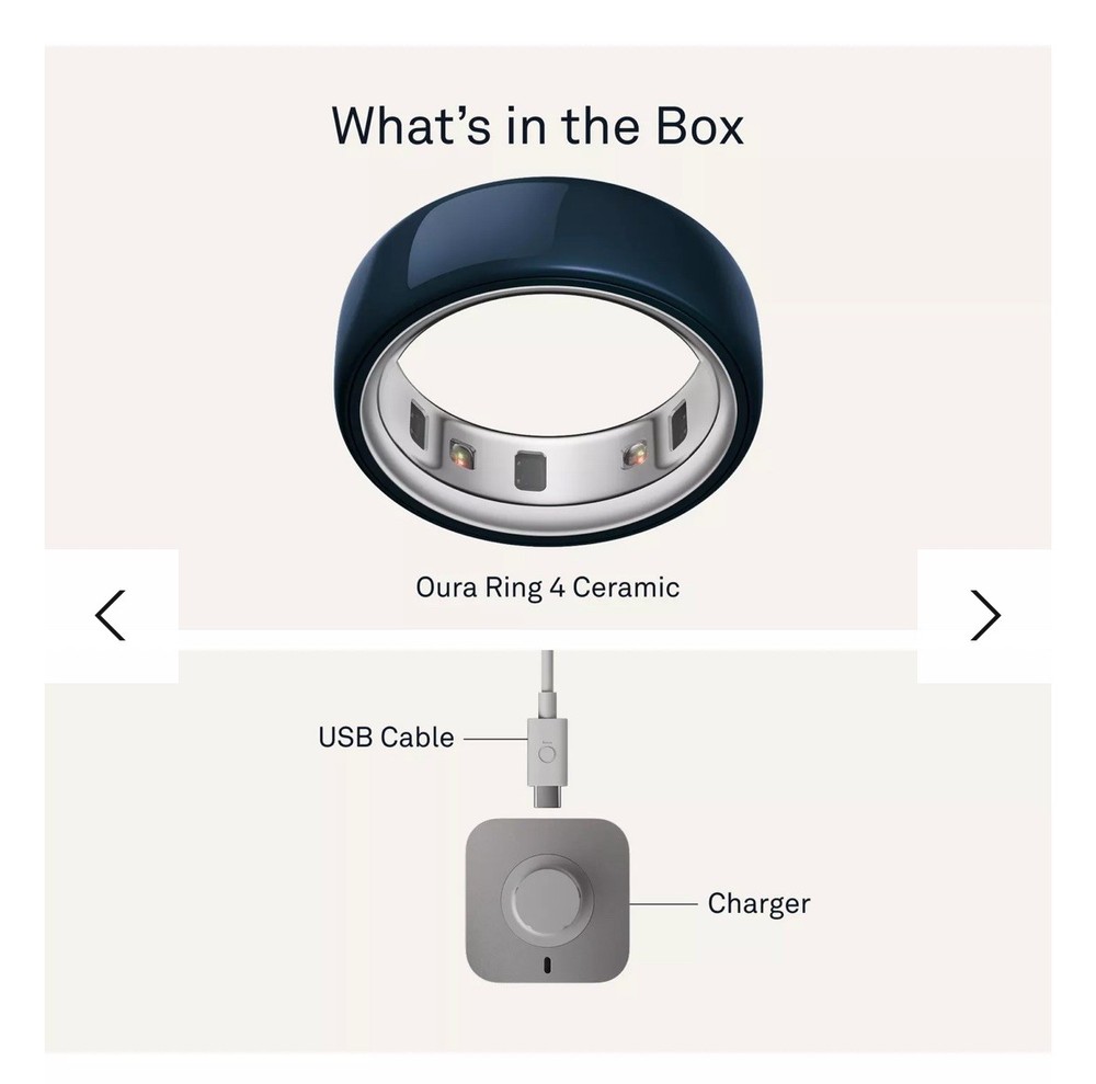 Brand: Oura Model: Oura Ring 4 Category: Smart Health / Activity Tracker Wearable Type: Ring Color: Midnight Blue Material: Ceramic Size: 9 Connectivity: Bluetooth Compatibility: iOS, Android Condition: New (factory sealed)