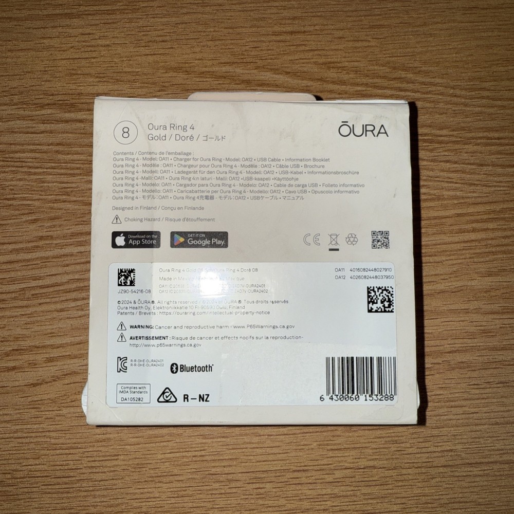 Oura Ring 4 Gen 4 Smart Ring in Gold Size 8