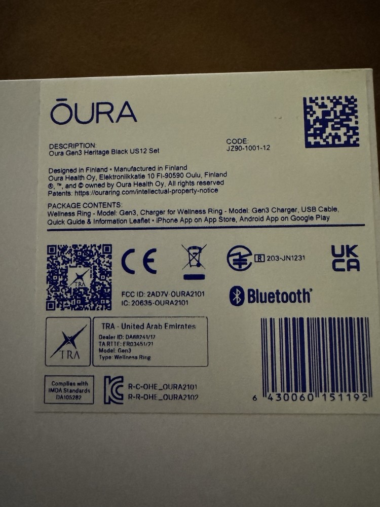 Like new Oura Ring Gen3 Heritage Black size US 12. Worn for sleep only for approximately 1-month.