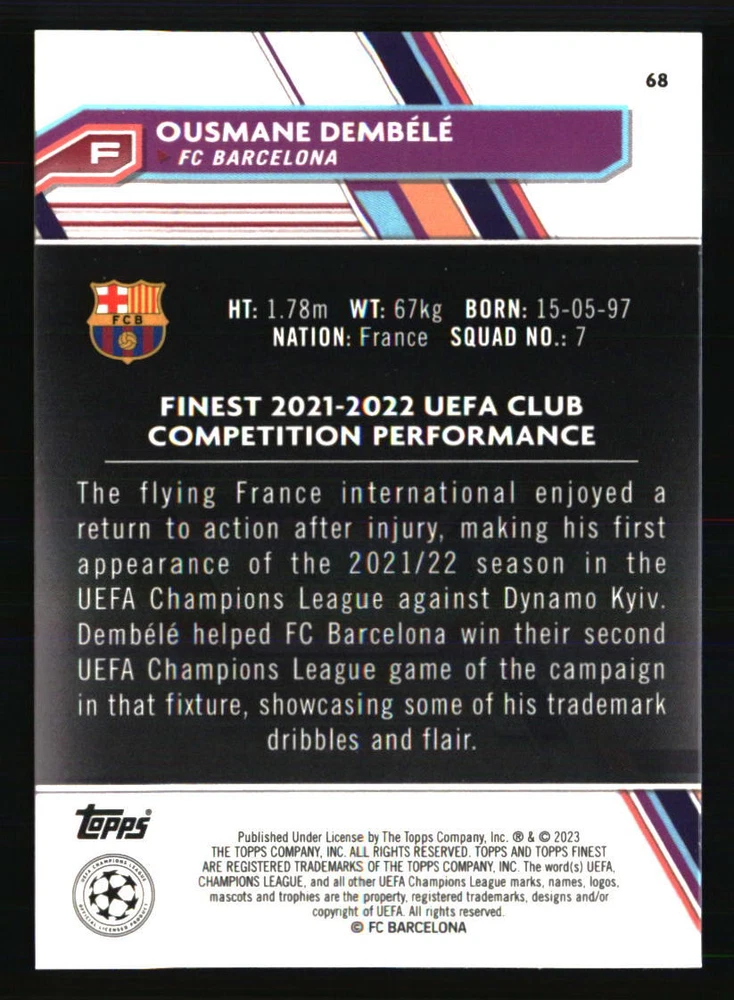 Ousmane Dembele 2022-23 Topps Finest UEFA Club Competitions #68 SOCCER Card