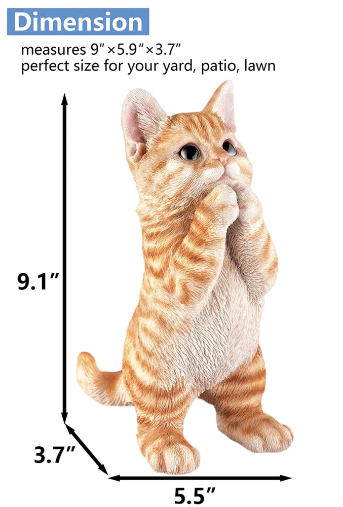 Using high quality resin,hand painted with a perfect UV resistant coating,and high temperature resistance,it can withstand all types of weather,so fading,rain and frost won't be a problem. Resin Cat Figurine:Hand-painted art,from the cute ears to the thin cat claws are vivid details,the cute cat is praying both hands with pious eyes,you'll find love in every detail in this statue. Cute cat statue:Fun cat resin figurine art can decorate your garden,lawn,yard,living room or office,bring a little vitality to your life. Resin Cat Figurine Decoration:Using high quality resin,hand painted with a perfect UV resistant coating,and high temperature resistance,it can withstand all types of weather,so fading,rain and frost won't be a problem. Garden Cat Statue Outdoor Decor:Meansure 5.5"L×3.7W"×9.1"H, weight 1.1lbs,a cute miniature statue fits perfectly into your garden. Cat Statue Ideal Choice:Our funny cat statues handicraft make the perfect ideal choice!Whether it's for family,friends,coworkers or for yourself,it's a great ideal choice.