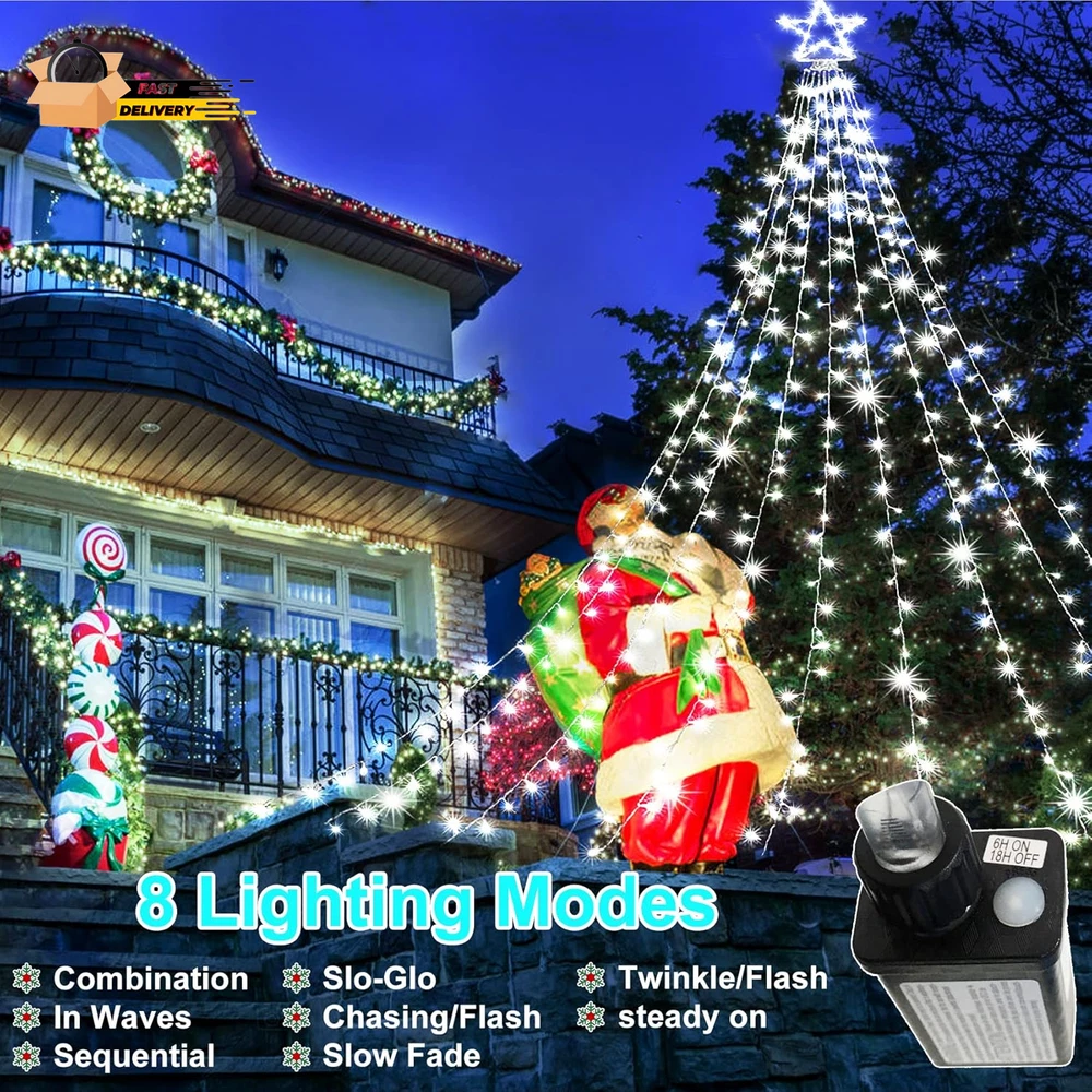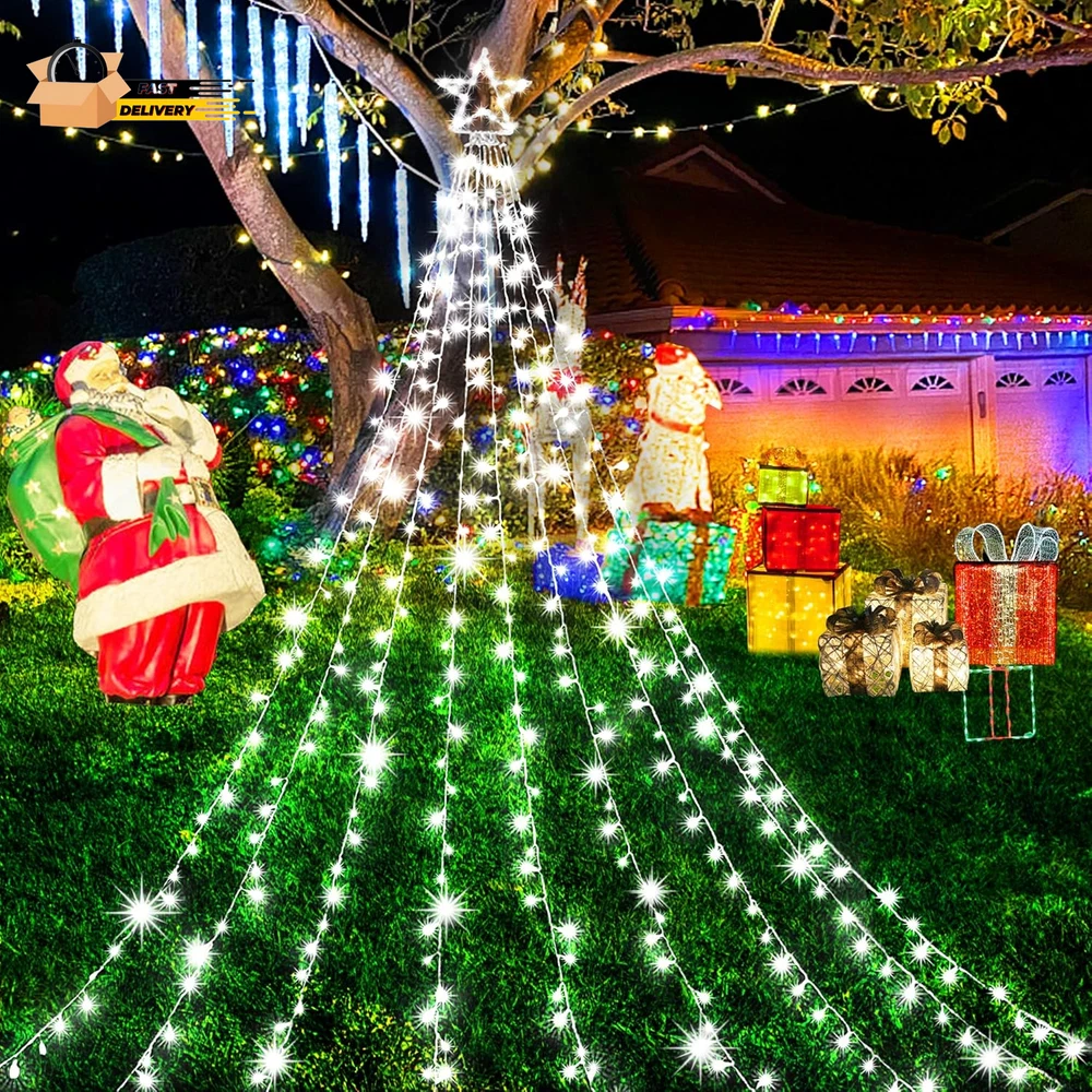 Store New Arrivals Add to Favorite View Feedback Contact Outdoor Christmas Decorations Waterfall Star Lights,344 LED 8 Modes Tree Light,Plug in Clear Wire Waterproof Seasonal Lighting Decor for Xmas Tree Wedding Yard Holiday Garden Cool White Description Item model number BG-CL3M3-306L01 Item dimensions L x W x H 12.4 x 2.1 x 13 inches Number of Light Sources 344 Light Color cool white Item Dimensions 12.4 x 2.1 x 13 inches Color Cool White Material Type Plastic, Copper Product Dimensions 12.4 x 2.1 x 13 inches; 1.41 Pounds Material Plastic, Copper Country of Origin China Theme Star Voltage 29 Volts Recommended Uses For Product Outdoor Indoor Use Holiday Use Innovative Design:12ft Christmas tree lights with 344LEDs beads, and 16.4ft plug cord, It consists of a foldable star-shaped light and 9 string lights, The large star ornament is about 12in,each string light drops 11.5ft.unique folding design,allowing for easy storage and setup.nine strings of flash lights that cascade gracefully from the top,creates a warm and inviting atmosphere,making it ideal for family gatherings,holiday parties,or simply enjoying a cozy evening at home 8 Lighting Modes and Timer Function:Christmas decorations outside lights are available in a 8 lighting modes: Combination,In Waves,Sequential,Slo-Glo,Chasing/Flash,Slow Fade,Twinkle/Flash and steady on.Combine multiple lighting modes,you can easily customize the ambiance to suit any occasion.Enjoy hassle-free decorating with the built-in timer function,which automatically turns the lights on for 6 hours and off for 18 hours Waterproof and Memory Function:IP44 outdoor waterproof designed,which is very perfect for outdoor decor and can work normally even in cold winter.Memory function is recover from the previous setting mode when you restart.Great for Christmas decoration,Thanksgiving,Wedding,Valentine's Day,and more.This is the most classic style,lighting up the eave,tree,wall,deck,balcony,Christmas tree,creates a charming atmosphere Dimming and Safer:Our Christmas decorative lights come with a versatile brightness adjustment function, 100%-75%-50%-25% 4 level brightness adjustable,allowing you to customize the glow to suit your festive mood.UL Listed Plug and Low-temp LED bulbs ensures safe to touch even after long time use.Allows you to save time and effort.Safer to use Package Includes:1XChristmas decorations lights,1Xplug,These Christmas tree lights are incredibly versatile,Use them to adorn your Christmas tree,or drape them over outdoor trees and shrubs.Perfect for holiday parties,family gatherings,or simply brightening up your home,they add a festive touch wherever they are placed Product Description Budget-friendly string lights abound, but KNONEW Commercial String Lights manage to be inexpensive without looking cheap. Getting to Know the Christmas Decorations Amazing Size : This Christmas tree light star is 12in high, with 9 sets of 11.4ft long strings, 0.33ft bead spacing, 16.4ft power extension cord length, 344 bright LEDs in total. Convenient Integrated Plug : The Christmas lights have 8 lighting modes (flashing, twinkle, waves, sequential, slow-glow, chasing, slow fade and steady on.) That can be switched by pressing the white button on the integrated plug. Safer At Low Pressure : The 29V low voltage output of the UL listed power adapter LED Christmas lights provides double security for you and your loved ones. High Efficiency & Low Energy Consumption LED : High quality LED beads reduce your energy waste by 90% and keep you away from high electricity bills. Year-round Outdoor Use : Christmas waterfall star lights can be used in outside for a full year and you will impressed with how well they endured through record-breaking heat, rain, and cold. It's not Christmas without Christmas tree lights Decorating the Christmas tree is definitely the most anticipated thing in the winter for the little ones in the family. Romantic Christmas decorative lights can turn an ordinary place into a festive corner, bringing a real sense of joy and excitement and filling your home with the wonderful scent of the season. Enjoy warm colors, away from Glare and Flicker! We select only the best quality LEDs to provide warm colors, bright and stable light output for eye comfort. Enjoy the beauty of the holidays while keeping you away from Flicker and Glare. Pure Color & Tidy Wire Safer For Home Use Weather Resistance The most special gift for the most loved family and friends! They're sure to fall in love with the wonderful gift that adds sparkle, joy and wonder to their homes right away. ABOUT US We offer the best prices around on high quality products. Our E-store includes media such as books, movies, music and games while offering electronics, toys, sporting apparel, clothing, tools, general home, garden items and more. SHIPPING We are always working hard to ensure your package arrives as soon as possible. Please understand that some factors like weather, high postal traffic, and the performance of shipping companies are outside of our control. We offer free shipping to the lower 48 states and ship within 2 business days of payment, usually sooner. We do not accept P.O. Boxes. Please provide a physical address. For shipping outside of the continental USA, we only use eBay's Global Shipping Program.The item is shipped to KY and then sent to the rest of the world. International customers are responsible for all duties and taxes. Continue to check out in order to calculate costs for shipping the item to your country. Messages regarding eBay's Global Shipping Program MUST be directed at eBay EXCLUSIVELY. RETURNS We offer a 30-Day Return Policy on items which you are not completely satisfied with. You have the option for a full-refund or an exchange of the item. No returns are available on items shipped outside of the USA. PAYMENT We accept PayPal. CONTACT US This page content is yet to come Please ad us to your favorite seller and visit again later Thank You CUSTOMER SATISFACT