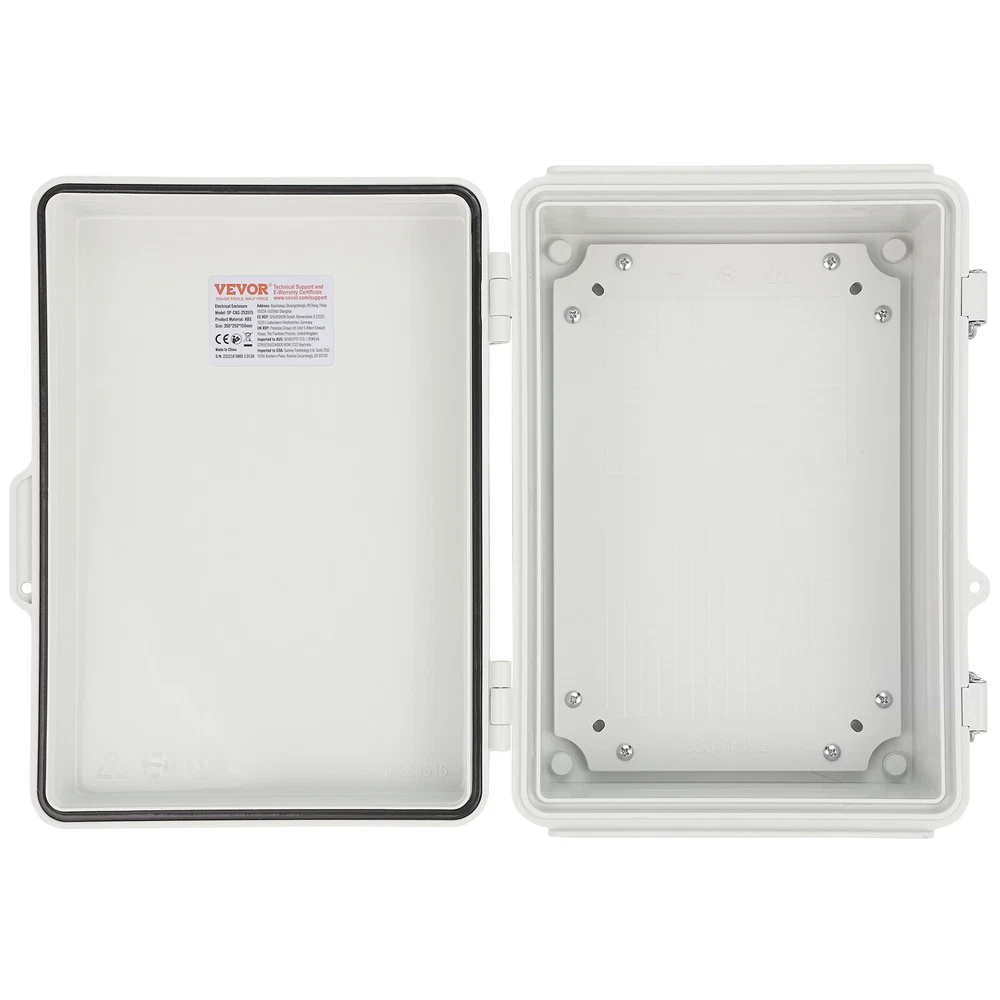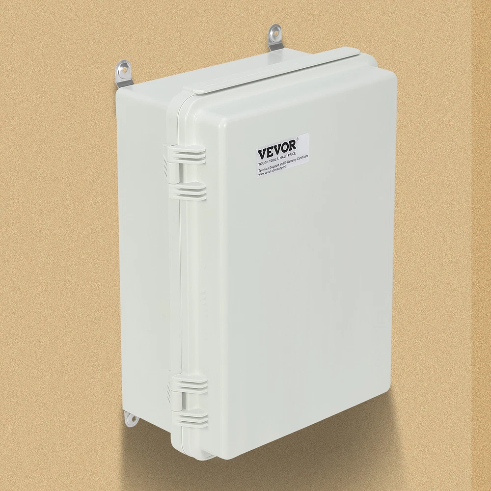 VEVOR Outdoor Junction Box 11.81x7.87x7.08 in ABS Plastic Electrical Enclosure delivered on time as described. Internal mounting plate came with 8 (8!) mounting screws! Plastic is fairly durable, and sealing gasket is good. Probably not an outdoor NEMA enclosure, but works great for indoor applications.