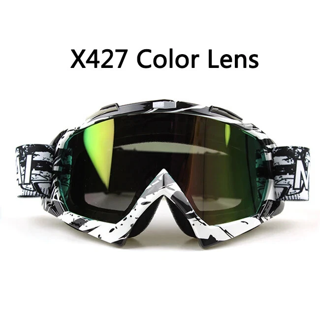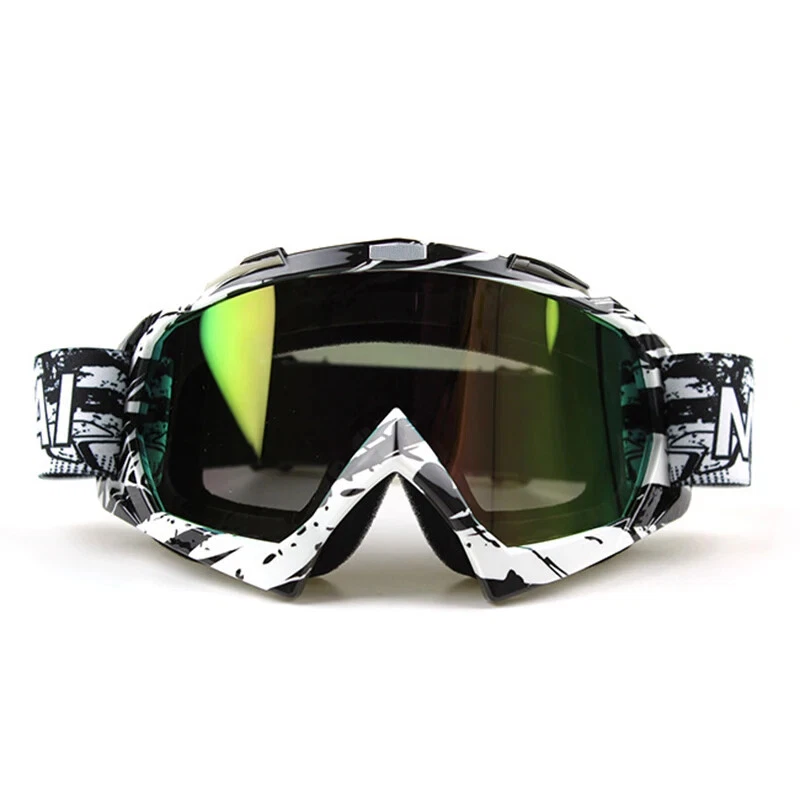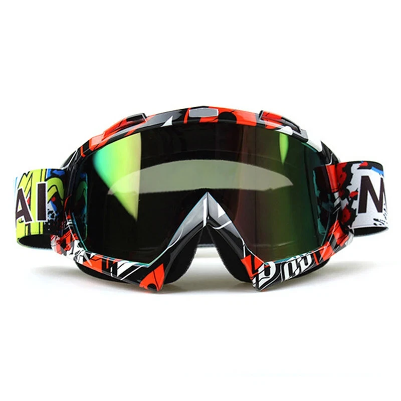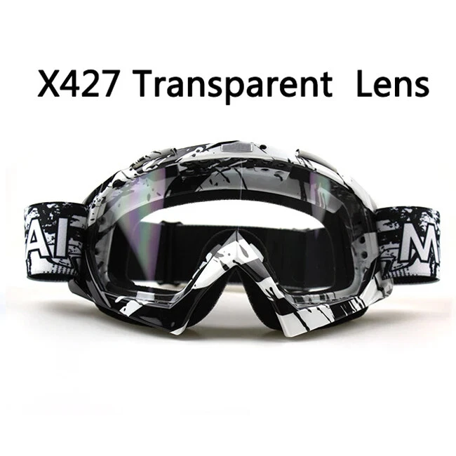 -------------- Item Description -------------- Photos will be slightly different, but the style is the same Features: Universal motorcycle goggles Brand new and high quality. Frame material light and toughness can fold. There will be very heavy feeling, and drop. Wide non-slip elastic band bold design to prevent goggles from slipping off the helmet. You can adjust the length of the mirror with a variety of face are suitable to ensure a comfortable fit. High-quality PC lens material, hardened defense friction scratch. Frame is made with flexible plastic, difficult to damage. Adjustable Headband 4cm wide adjustable elastic cord a length of 21-49cm, suitable for a variety of face and prevent from helmet fall; and face contact parts made of sponge material, comfortable and safe. Material: PC + sponge + composite plastic. Package Included: 1 X Motorcycle Bike Goggles NO Retail Box. Packed Safely in Bubble Bag. ---------------- Product Detail -------------- Applicable range: journey , climbing mountain , factory miner , riding and playing sport . It is effective to prevent eye injury from iron filings ,dust and gravel .