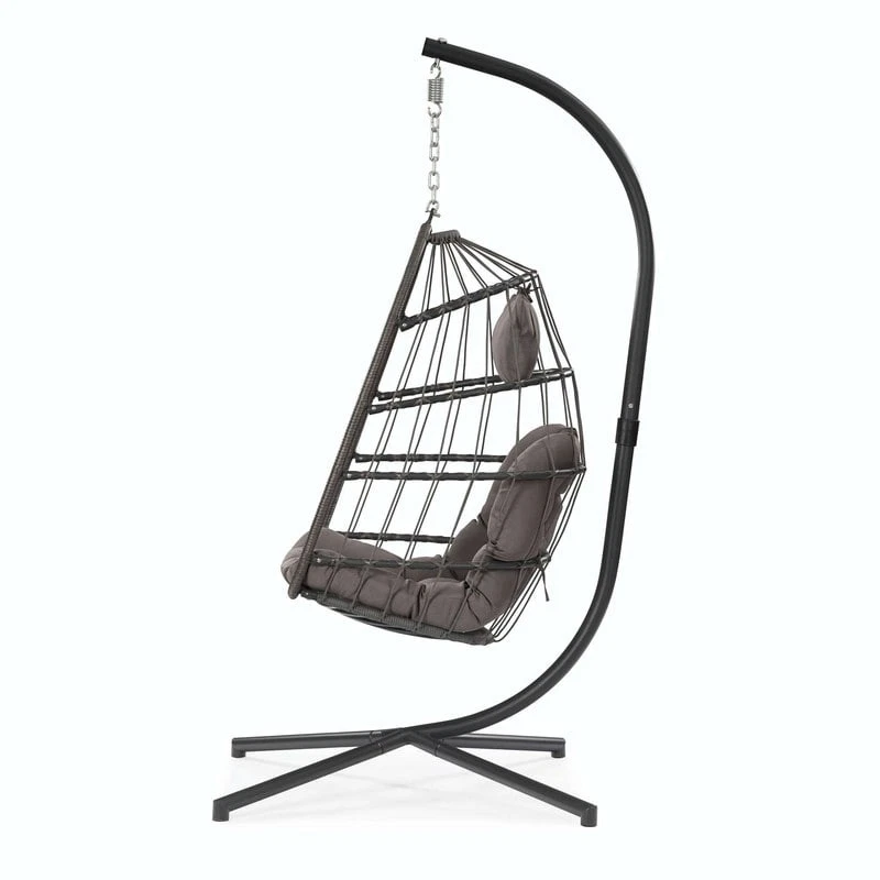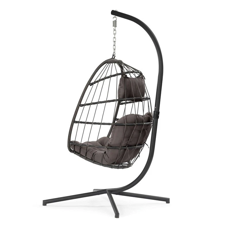 Features: CLASSIC EGG CHAIR: Overall chair dimensions (collapsed) are 76 inches long x38 inches wide x 38 inches deep; Seat is 29.2 inches wide x 25.6 inches deep x42.5 inches high;350-pound weight capacity: STURDY AND COMFORTABLE: Seat and frame of egg chair is constructed of polyethylene rattan resin wicker wrapped around a aluminum frame for weather-resistant protection, strength and durability; Back features nylon rope; Seat cushion and headrest pillow feature a polyester material and polyester fiberfill cores;All-in-one seat, back and arm cushion;Stand is made of powder-coated+Electrophoretic paint steel. It is sturdy & safe for you to sit in, and it will be a great addition to your indoor or outdoor furniture. EASY TO ASSEMBLE: This chair and stand are simple to put together with the Free Shipping Over $49.99* Details Outdoor Patio Swing Chair Patio Egg Chair Product Description: Features: CLASSIC EGG CHAIR: Overall chair dimensions (collapsed) are 76 inches long x38 inches wide x 38 inches deep; Seat is 29.2 inches wide x 25.6 inches deep x42.5 inches high;350-pound weight capacity: STURDY AND COMFORTABLE: Seat and frame of egg chair is constructed of polyethylene rattan resin wicker wrapped around a aluminum frame for weather-resistant protection, strength and durability; Back features nylon rope; Seat cushion and headrest pillow feature a polyester material and polyester fiberfill cores;All-in-one seat, back and arm cushion;Stand is made of powder-coated+Electrophoretic paint steel. It is sturdy & safe for you to sit in, and it will be a great addition to your indoor or outdoor furniture. EASY TO ASSEMBLE: This chair and stand are simple to put together with the included tools and hardware; Everything you need is in the box, including the chair, headrest pillow, seat cushion, safety strap and stand; Safety strap helps keep the chair safely in place while getting in and out of the chair; Chair provides a relaxing seat for one person LOOKS GREAT INDOORS OR OUTDOORS: Egg chair is designed to be used inside or outside; Stand and chair combo makes it easy to add a stylish seat to an apartment without having to permanently install it into the ceiling; Makes a wonderful addition to the patio, deck, garden, yard, backyard, porch, bedroom, living room and other places around your home MATERIAL USED- The egg chair used ALUMINUM frame and Power coating+Electrophoretic paint steel standing pole to avoid rusty problem, the egg chair used weather resistant fabric and wicker, the egg chair can be used for a long time.