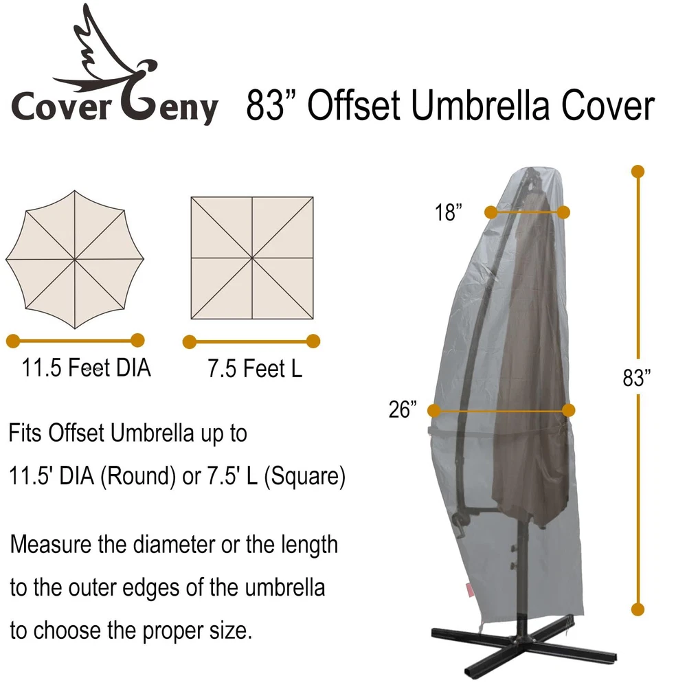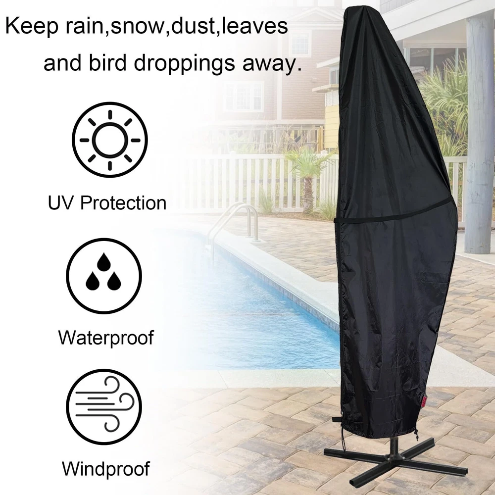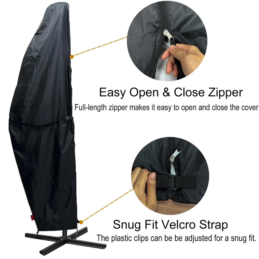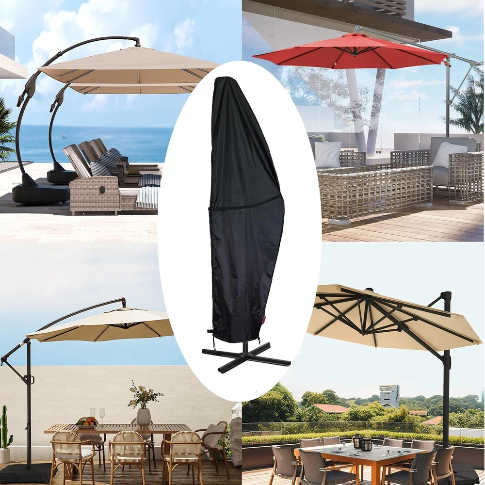 Outdoor Patio Umbrella Parasol Cover - Waterproof Banana Style Umbrella Cover - Fits Garden Cantilever Offset Umbrella 7.5-11.5 Feet Dia Black (Fast Free Shipping) 1.Fits Most Cantilever Umbrellas: Our waterproof cantilever offset umbrella cover is designed to fit outdoor cantilever umbrellas in the shape of a banana from 7.5-11.5 feet. The cover is made of high quality materials to protect your umbrella from wind, rain, snow and other inclement weather. 2.Double Windproof Design: The umbrella cover features a plastic clip and zipper closure that can be adjusted for a secure and easier fit, ensuring that it stays in place even on windy days.There is a attachment strap buckle in the center of the cover to secure the cover on windy days. 3.Durable and Sturdy: Made from waterproof materials with a sturdy zipper, this Cantilever Parasol Outdoor Market Umbrella Cover is durable and built to last. 4.Easy to Use: Get your outdoor umbrella covered quickly and easily with this Banana Frame Umbrella Cover. Its simple design makes it a must-have for any homeowner, keeping their garden and beach umbrellas looking great for years to come. 5.Weatherproof: This Water-Resistant Protector Black cover ensures that your patio umbrella stays protected all year round. Perfect for outdoor events, parties, and barbeques without worrying about unexpected rain showers! The Outdoor Patio Umbrella Parasol Cover is the perfect addition to your outdoor patio setup. Designed to protect your patio umbrella from the harsh elements of the weather, this waterproof banana style umbrella cover is made to fit garden cantilever offset umbrellas that are between 7.5 to 11.5 feet in size. The Patio Umbrella Cover is made with high-quality materials, ensuring that your umbrella remains safe and protected for long periods. The cover features an attachment strap buckle in the center, which secures the cover in place during windy days. The bottom heavy-duty plastic clip and zipper closure can be adjusted for a tighter, easier fit, ensuring that your umbrella remains secured in place during even the strongest of winds. The elastic hem cord with toggles allows adjustment for a tight custom fit, which is perfect for ensuring that the cover fits your patio umbrella snugly. This feature ensures that the cover remains in place, preventing any damage to your patio umbrella. Made with weather-resistant materials, this patio umbrella cover provides a layer of protection against harsh weather elements such as rain, snow, and the sun's UV rays. It is made from high-quality materials that are resistant to tears, fading, and water damage. The Patio Umbrella Cover from is very easy to clean and maintain. Simply wipe down the cover with a damp cloth to remove any dirt or debris that has accumulated over time. The cover is also easy to operate, and it can be easily installed or removed from your patio umbrella. In conclusion, the Outdoor Patio Umbrella Parasol Cover is designed to protect your patio umbrella and keep it looking new for years to come. Shipping Method's We offer FREE shipping on all orders! All our the USA. We provide Fast and Free Shipping. We ship within 3 to 5 business days of payment, usually sooner like the next day. We use a selection of shipping services such as UPS, FedEx, USPS, and which provide fast shipping to your address, etc. We only ship to the lower 48 states, no APO/FPO addresses or PO Boxes are allowed. Local pickups and combined shipping options are not provided at this time. But we are trying to solve this issue. and we soon open this option in every state. We need your Support so we can provide the best options. Return Policy As we Know Return policy is very important to ensure customer satisfaction. so You can return a product for up to 14 days from the date you purchased it. Any product you return must be in the same condition you received it and in the original packaging. Please keep the receipt. and we will exchange the item or issue the full payment as per mutual understanding. but your satisfaction is first. Payment Method We accept payment by any of the following methods: that eBay accepts so you can safely pay through eBay. and all your information is securely safe through the eBay platform. Please pay as soon as possible after winning an auction or Buy now. when eBay receives your payment so that will allow us to post your item to you sooner! Feedback Customer satisfaction is very important to us. becasue we don't have a plan to make a clients we have a plan to make a family. and in the family all satisfaction is important. If you have any problem with your order or anything, please contact us and we will do our best to make you satisfied and help you to solve the Issue As Soon As Possible. and try to Happy you in every condition. Contact Us If you have any queries, please contact us via eBay because our team is active on eBay. We usually respond within 24 hours on weekdays. if we are late don't worry we are working to solve your issue in the backend. Please visit our eBay store to check out other items for sale! and follow us for more updates. because we give the best offers for our followers! Thank you for shopping at our store. Happy buyer Happy Seller Happy Shopping