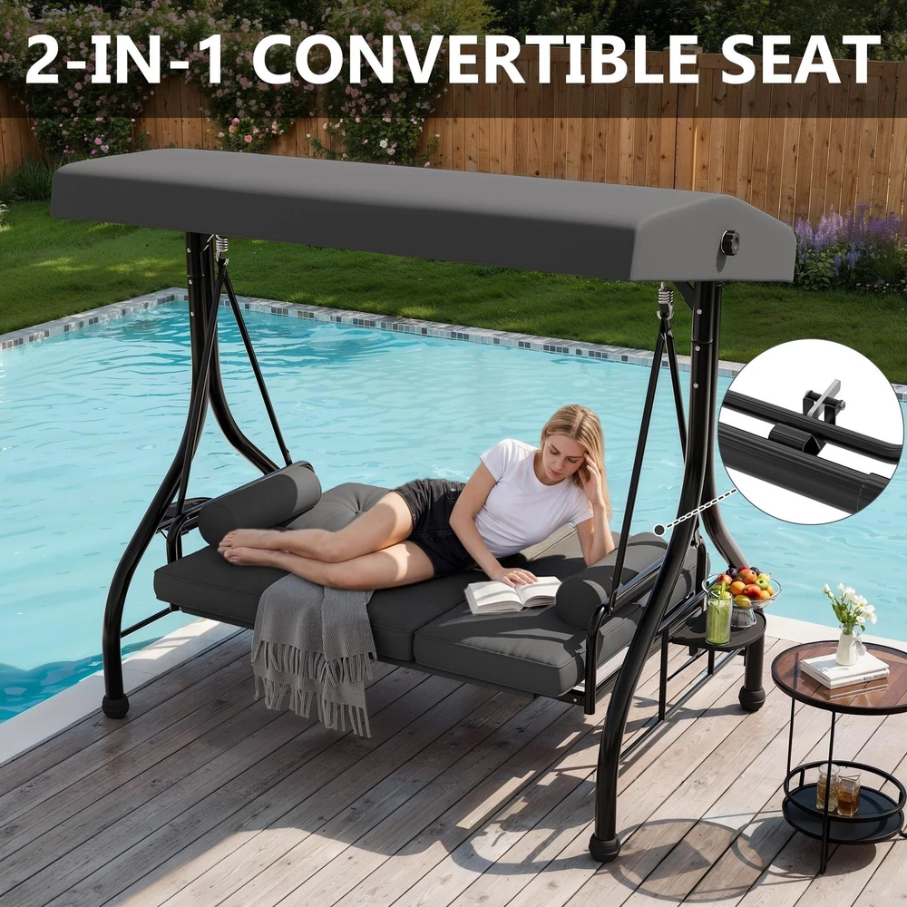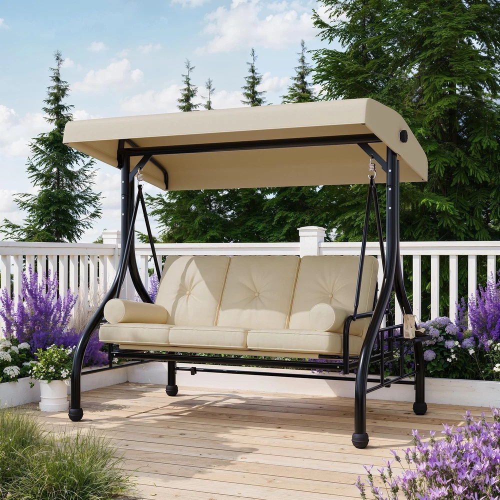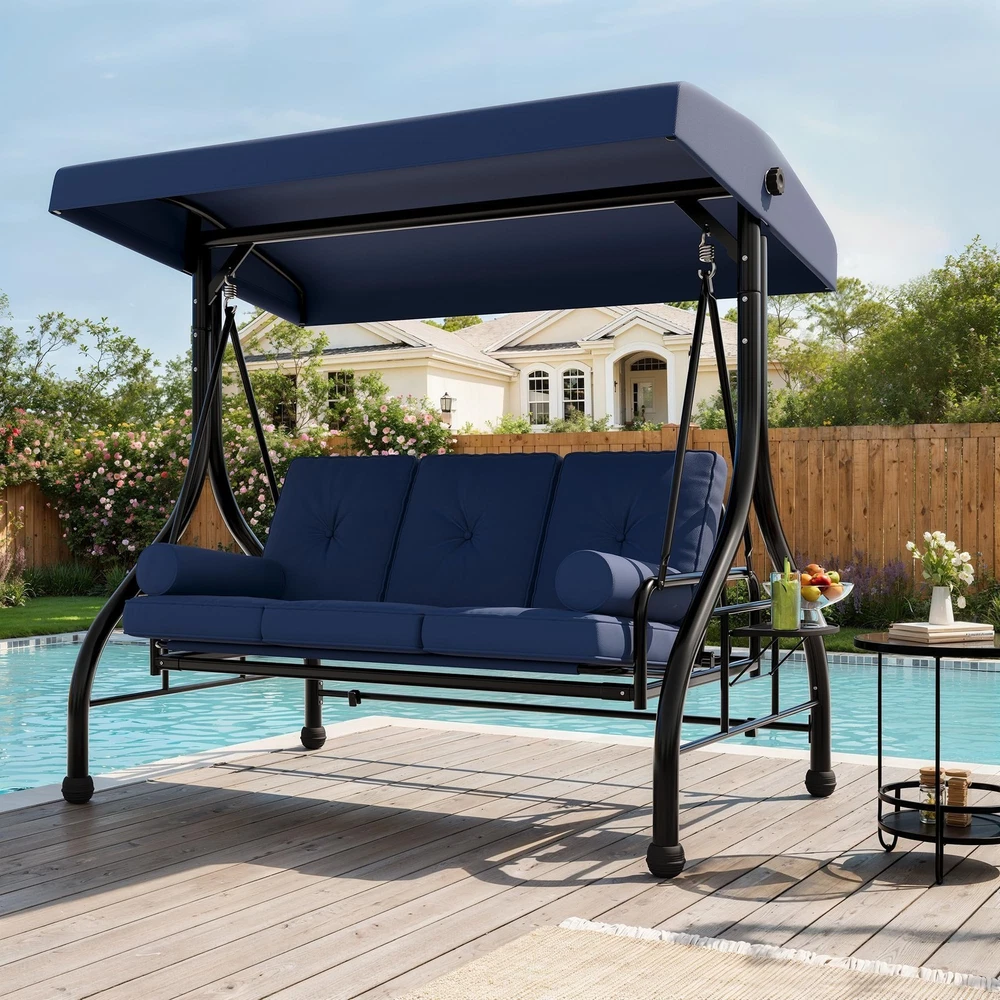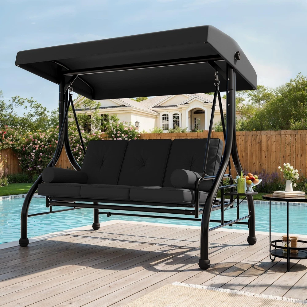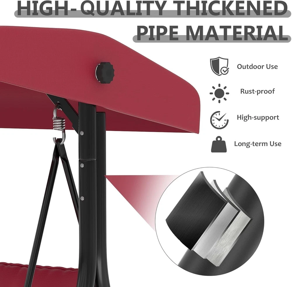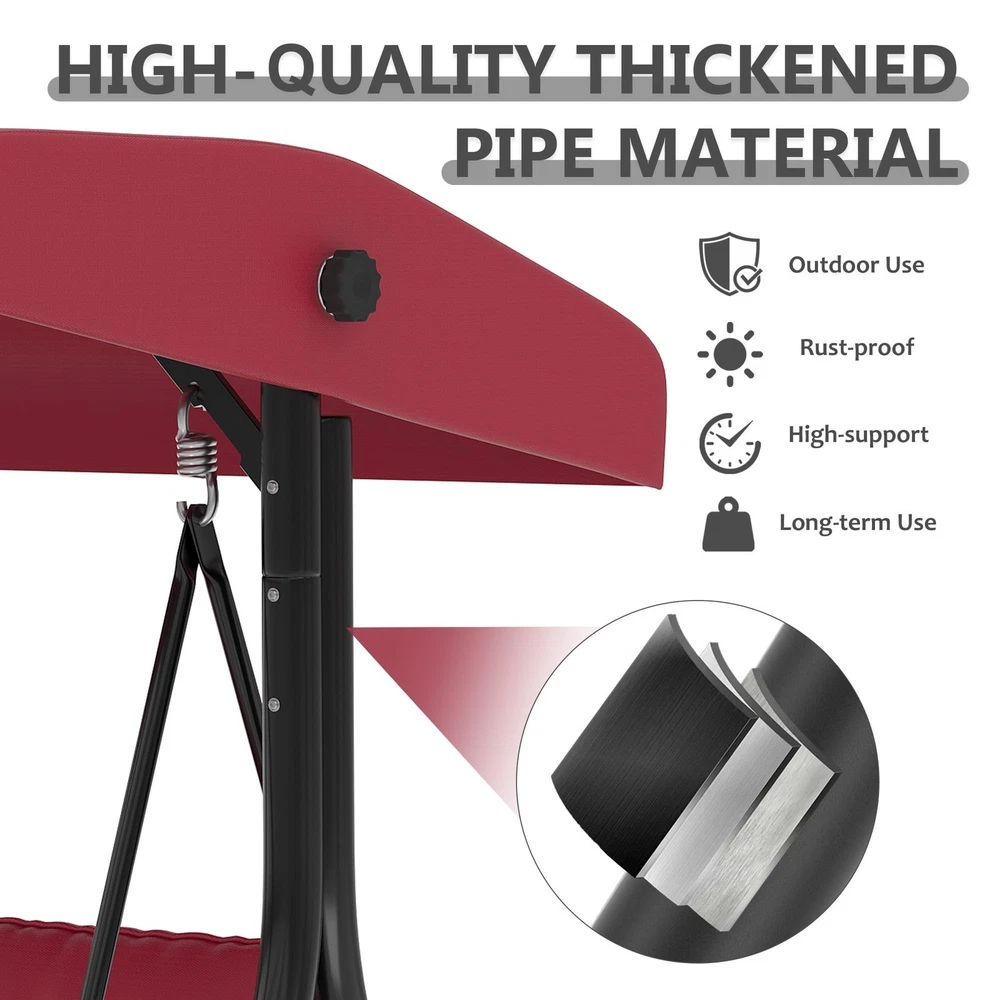 Outdoor Porch Swing with Adjustable Canopy 3-Seat Garden Patio Swing Chair ADJUSTABLE CANOPY FOR ALL-DAY SHADE:Designed with a smooth knob adjustment system, this patio swing with canopy allows you to tilt the roof to different angles for better shade throughout the day. The UV-resistant fabric helps reduce sun exposure while relaxing on your outdoor swing chair. HEAVY-DUTY METAL FRAME WITH STABLE TRIANGLE STRUCTURE:Built with thick powder-coated steel tubing and a reinforced triangular base, this porch swing with stand offers excellent stability and durability. The rust-resistant metal frame supports up to 800 lbs, making it a reliable outdoor swing for adults. DUAL CUP HOLDER TRAYS FOR CONVENIENT STORAGE:Equipped with two side trays, this patio swing chair provides space for up to four cups or small items such as phones and snacks. Enjoy drinks and conversation comfortably while relaxing on your porch swing. RECLINES UP TO 180° FOR LOUNGE-STYLE COMFORT:Designed with a flexible backrest mechanism, the seat can recline up to 180 degrees, easily transforming the outdoor porch swing into a relaxing swing bed. Ideal for reading, chatting, or simply unwinding in your patio or garden. PLUSH CUSHIONS WITH PILLOWS FOR ADDED COMFORT:Soft seat cushions combined with supportive lumbar pillows create a comfortable seating experience. The water-resistant fabric and replaceable foot pads help enhance durability, making this patio swing suitable for patios, balconies, poolside areas, and gardens. From the brand 3 Seat Heavy-duty Porch Swing 3 Seat Porch Swing Textilene Outdoor Lounge Chair Product description Payment Delivery details Returns details Feedback Payment We accept Payoneer only. All major credit cards are accepted through secure payment processor PayPal. Payment must be received within 7 business days of auction closing. If you have bought multiple items from me, you can send me one payment for all the items instead of paying for them individually. When you click the Pay Now button, eBay will automatically determine if there are other items you have won or purchased from me and will combine them for your review. NOTE: Import duties, taxes and chargers are not included in the item price or shipping charges. These charges are the buyer's responsibility. Please check with your country's customs office to determine what these additional costs will be prior to bidding buying. Delivery details 1. We will delivery out at the handing time when we receive the payment. 2. The delivery time is 3-5 business days to US by usually time.The parcel maybe delay 1-2day of the weekend.Due to the bad weather,Holidays,Hot Season ect.the parcel maybe delay,If you have any problems,mssage us,we will try our best to solve it. 3. We ship to your eBay address. Please make sure your eBay address is correct before you pay. 4. If you want to change the shipping address,message us before our send out. 5. We cannot deliver your order if your state is PR. Returns details 1. If you donot receive the items at the delivery time,the parcel has broken/missing,Please message us before you open case/return,we will try our best to solve it. 2. We offer a 30 day return policy from checkout winning date. 3. An RMA number is required for all returns. Message us for return instructions. Items Returned without a RMA number will not be processed. 4. Items defective upon receipt must be packaged in their retail packaging as if new and returned with a detailed description of the problem. 5. Return shipping fees are not refundable. We reserve the right to decline any returns if the above guidelines are not followed. Feedback If you are not satisfied with the item for any reason, please do not quick to leave negative/neutral feedback even open request and case without any communication with us. We devote ourselves making EVERY CUSTOMER in 100% Satisfactory and resolve any problem. Thank you for your understanding and recognition,we are always leave positive feedback to all our customers. Reply: All replies will be sent to your email box, if you do not get response within 24 hours (Sat. & Sun. excluded) please check your eBay My Messages in case that our emails will be filtered automatically by your settings. Brand Unbranded Item Height 70.9 in Item Length 74.8 in Item Width 46.6 in Type Armchair