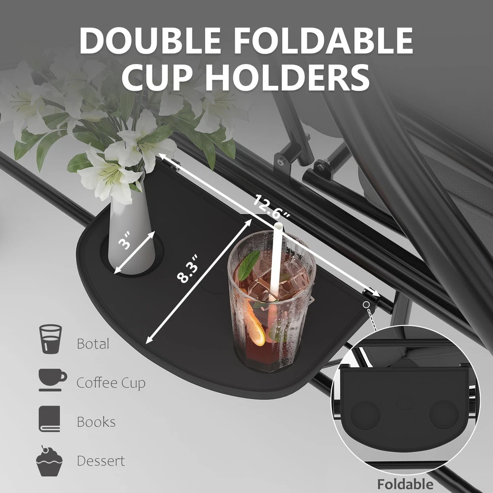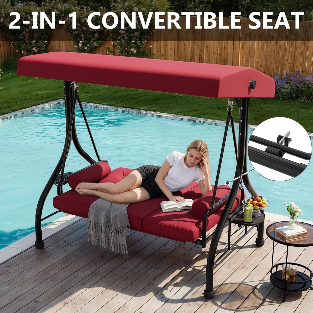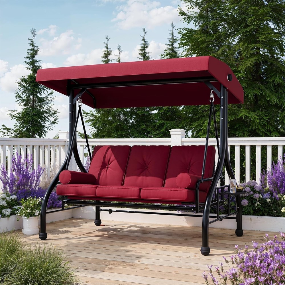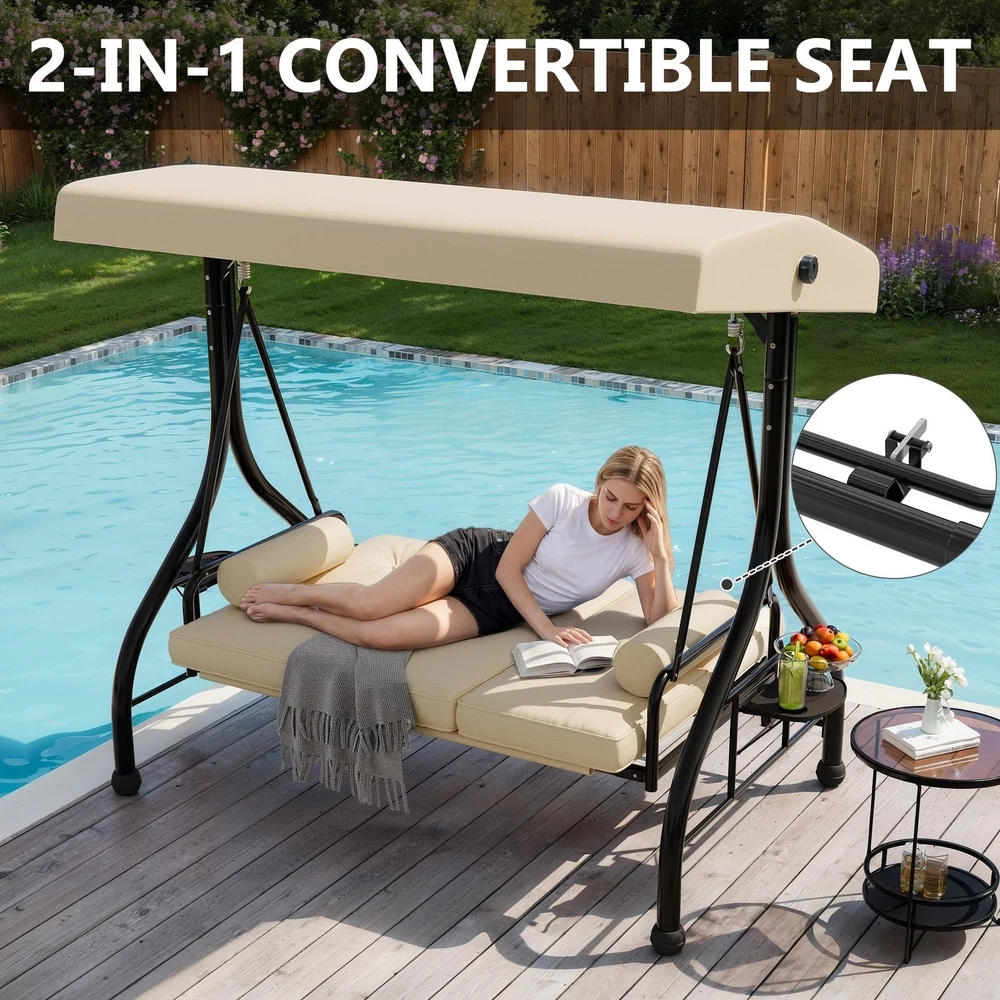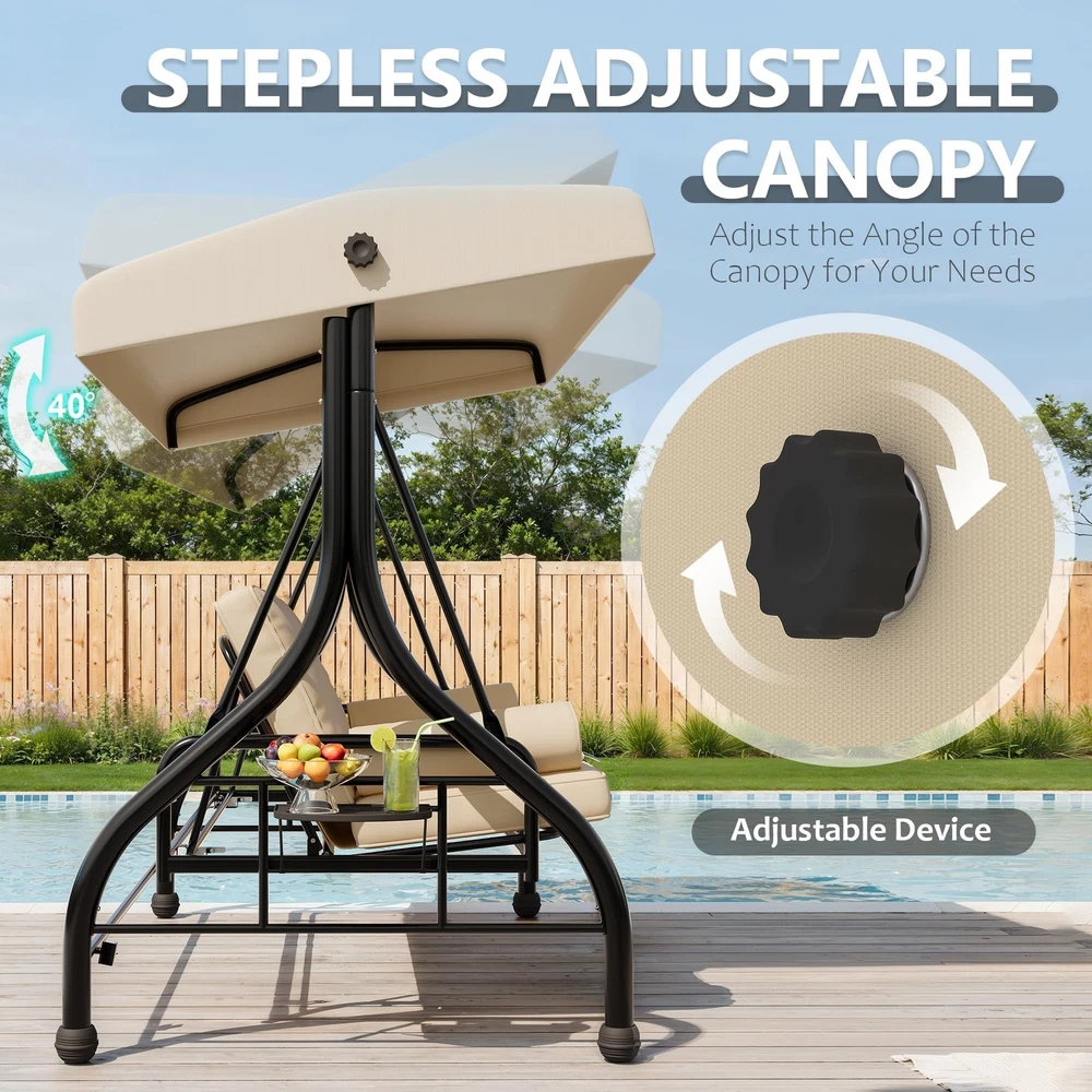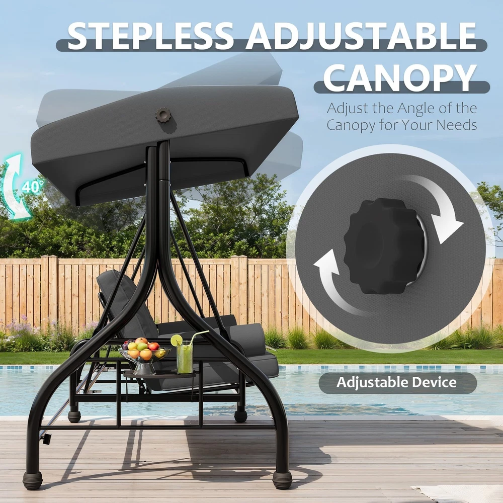 Outdoor Porch Swing with Adjustable Canopy 3-Seat Garden Patio Swing Chair ADJUSTABLE CANOPY FOR ALL-DAY SHADE:Designed with a smooth knob adjustment system, this patio swing with canopy allows you to tilt the roof to different angles for better shade throughout the day. The UV-resistant fabric helps reduce sun exposure while relaxing on your outdoor swing chair. HEAVY-DUTY METAL FRAME WITH STABLE TRIANGLE STRUCTURE:Built with thick powder-coated steel tubing and a reinforced triangular base, this porch swing with stand offers excellent stability and durability. The rust-resistant metal frame supports up to 800 lbs, making it a reliable outdoor swing for adults. DUAL CUP HOLDER TRAYS FOR CONVENIENT STORAGE:Equipped with two side trays, this patio swing chair provides space for up to four cups or small items such as phones and snacks. Enjoy drinks and conversation comfortably while relaxing on your porch swing. RECLINES UP TO 180° FOR LOUNGE-STYLE COMFORT:Designed with a flexible backrest mechanism, the seat can recline up to 180 degrees, easily transforming the outdoor porch swing into a relaxing swing bed. Ideal for reading, chatting, or simply unwinding in your patio or garden. PLUSH CUSHIONS WITH PILLOWS FOR ADDED COMFORT:Soft seat cushions combined with supportive lumbar pillows create a comfortable seating experience. The water-resistant fabric and replaceable foot pads help enhance durability, making this patio swing suitable for patios, balconies, poolside areas, and gardens. From the brand 3 Seat Heavy-duty Porch Swing 3 Seat Porch Swing Textilene Outdoor Lounge Chair Product description Payment Delivery details Returns details Feedback Payment We accept Payoneer only. All major credit cards are accepted through secure payment processor PayPal. Payment must be received within 7 business days of auction closing. If you have bought multiple items from me, you can send me one payment for all the items instead of paying for them individually. When you click the Pay Now button, eBay will automatically determine if there are other items you have won or purchased from me and will combine them for your review. NOTE: Import duties, taxes and chargers are not included in the item price or shipping charges. These charges are the buyer's responsibility. Please check with your country's customs office to determine what these additional costs will be prior to bidding buying. Delivery details 1. We will delivery out at the handing time when we receive the payment. 2. The delivery time is 3-5 business days to US by usually time.The parcel maybe delay 1-2day of the weekend.Due to the bad weather,Holidays,Hot Season ect.the parcel maybe delay,If you have any problems,mssage us,we will try our best to solve it. 3. We ship to your eBay address. Please make sure your eBay address is correct before you pay. 4. If you want to change the shipping address,message us before our send out. 5. We cannot deliver your order if your state is PR. Returns details 1. If you donot receive the items at the delivery time,the parcel has broken/missing,Please message us before you open case/return,we will try our best to solve it. 2. We offer a 30 day return policy from checkout winning date. 3. An RMA number is required for all returns. Message us for return instructions. Items Returned without a RMA number will not be processed. 4. Items defective upon receipt must be packaged in their retail packaging as if new and returned with a detailed description of the problem. 5. Return shipping fees are not refundable. We reserve the right to decline any returns if the above guidelines are not followed. Feedback If you are not satisfied with the item for any reason, please do not quick to leave negative/neutral feedback even open request and case without any communication with us. We devote ourselves making EVERY CUSTOMER in 100% Satisfactory and resolve any problem. Thank you for your understanding and recognition,we are always leave positive feedback to all our customers. Reply: All replies will be sent to your email box, if you do not get response within 24 hours (Sat. & Sun. excluded) please check your eBay My Messages in case that our emails will be filtered automatically by your settings. Brand Unbranded Item Height 70.9 in Item Length 74.8 in Item Width 46.6 in Type Armchair
