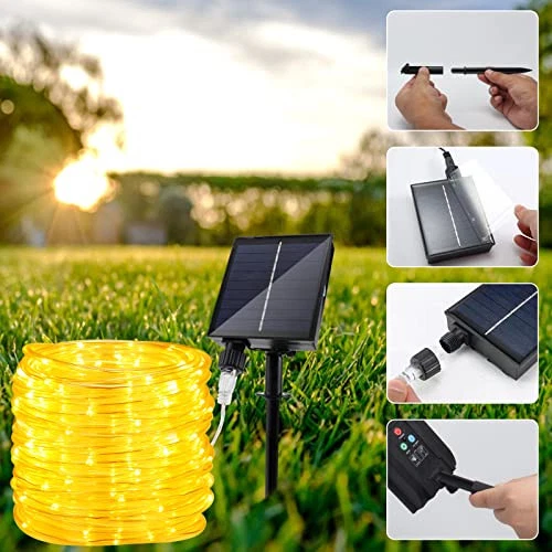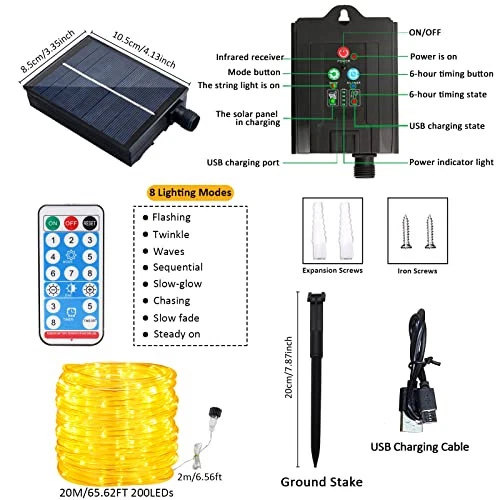Menu 1. We require immediate payment. 2. We currently accept payment via eBay managed payments only. 3. Once payment is cleared, we will dispatch your shipment within 1-3 business days. Please refer to the "Shipping" tab for more information regarding shipping speed to your destination. Outdoor Solar LED Rope Lights, IP65 Waterproof Rope Lights 22m/72.2ft 200LEDs Solar Decoration Lights with 8 Lighting Modes, Rope Fairy Light for Garden Tree Party Christmas Decoration Product description ?【More Brighter Rope Light】New 72ft 200LED solar string lights are equipped with an upgraded version of solar panel with a built-in rechargeable 1200mAh battery. After a quick full charging of 6 hours, the solar garden lights will shine for approximately 40 hours. With this upgraded solar panel, the string light will be brighter than others powered by ordinary solar panel. ?【Upgraded Solar Panel】Besides the large battery capacity, t is an USB charge port is designed on solar panel for rainy day/snowy day/heavy fog day when solar power cannot be charged. Comes with an USB charging cable, this means this rope light can be used indoors outdoors, anyw you want. ?【8 Modes & Memory Function】This solar string lights has 8 different LED dynamic changing effects, including combination, in waves, sequential, slow-glow, chg flash, slow fade, twinkle flash, steady, which can create different atmosps for your life. Solar string lights having the built-in memory chip will automatically remember the last setting, you do not need to reset it. ?【Smart Remote Control】This solar fairy light also comes with a smart remote control. 8 lighting modes can be switched by the corresponding 8 number keys on the remote control. Brightness adjustment and timing functions, 3 hours/5 hours/8 hours, or cancel timer. It's available for you to control solar fairy lights in a far distance. ?【IP65 Waterproof】The rope light is made of high quality PVC and copper wire. Both the solar rope lights and the solar panel are IP65 Waterproof, making it perfect for both indoor and outdoor without any worry of moisture or weather damage or short circuit. If you want to decorate your swimming pool, garden, courtyard, roof, porch, home, etc., this solar rope lights will be your ideal choice. PLEASE MESSAGE US IF YOU HAVE ANY OTHER QUESTIONS, AND MANY THANKS FOR READING ALL OF THIS. Copyright ©#. All Rights Reserved.